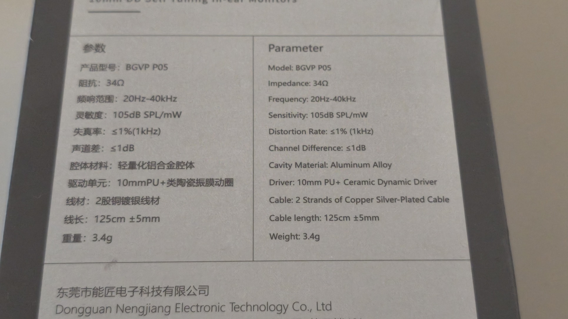 Impedance: 34Ω.