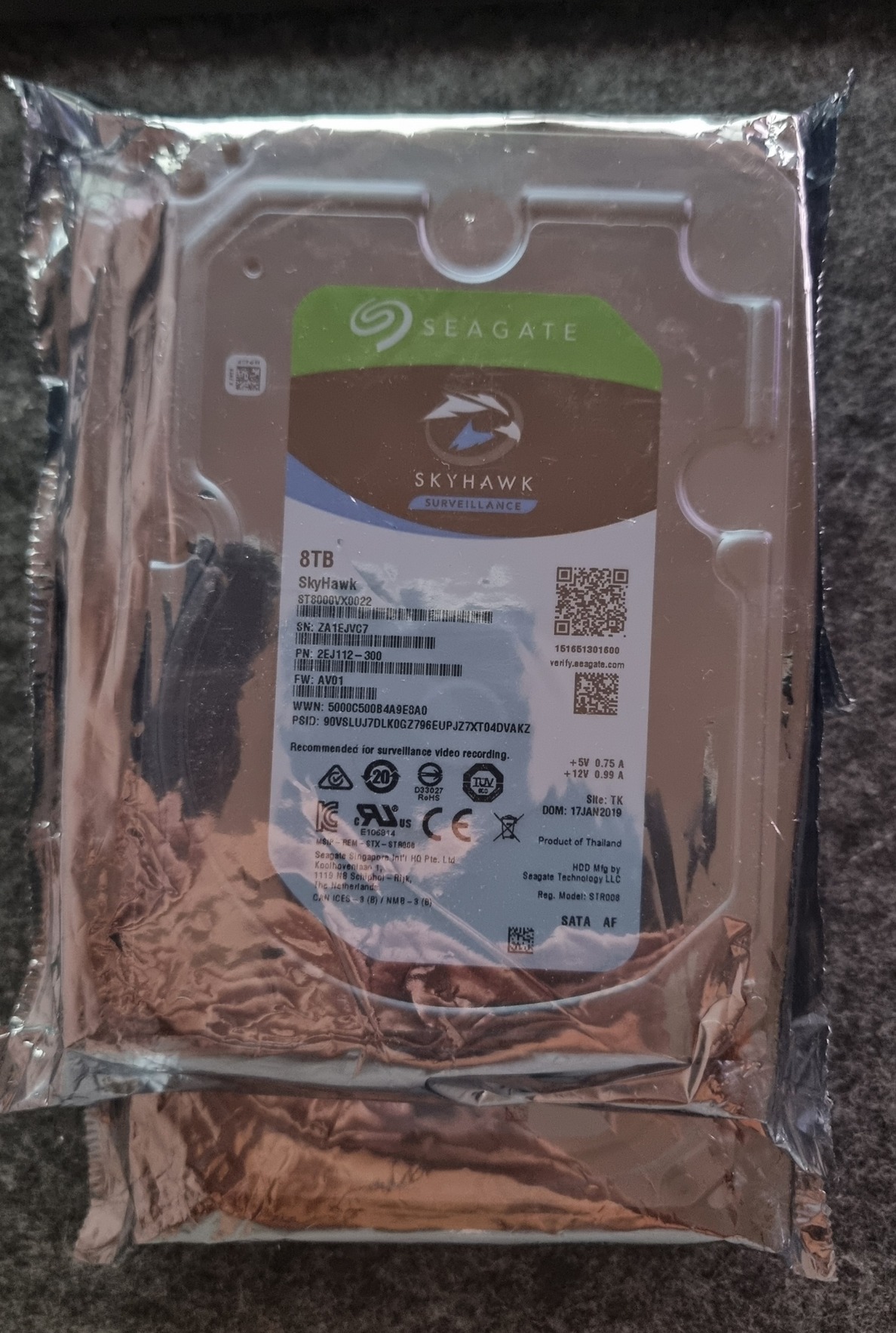Kihasználatlanság miatt eladó 1 db bontatlan Seagate Skyhawk 8TB 3,5" HDD