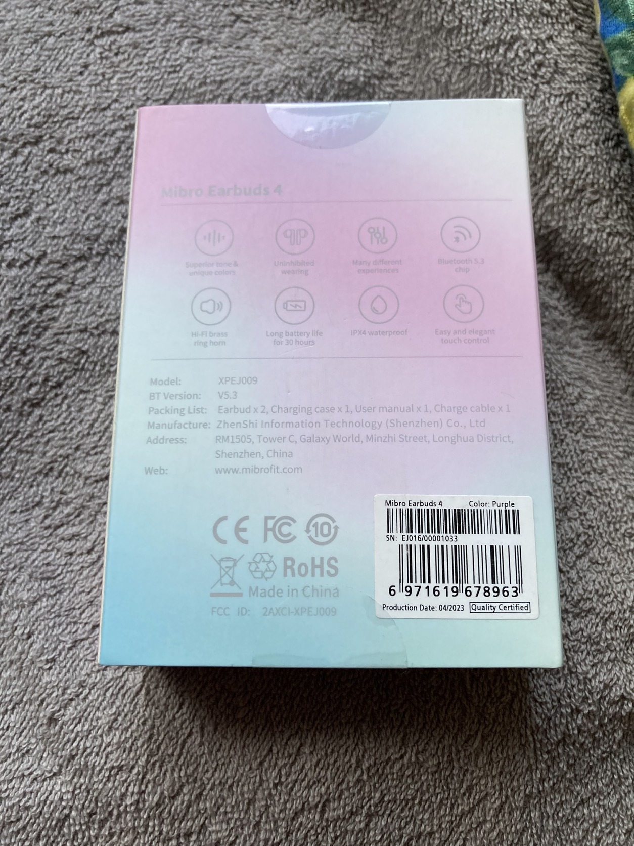 Eladó egy bontatlan Xiaomi Mibro Earbuds 4 vezeték nélküli bluetoothos vízálló fülhallgató, lila színben!