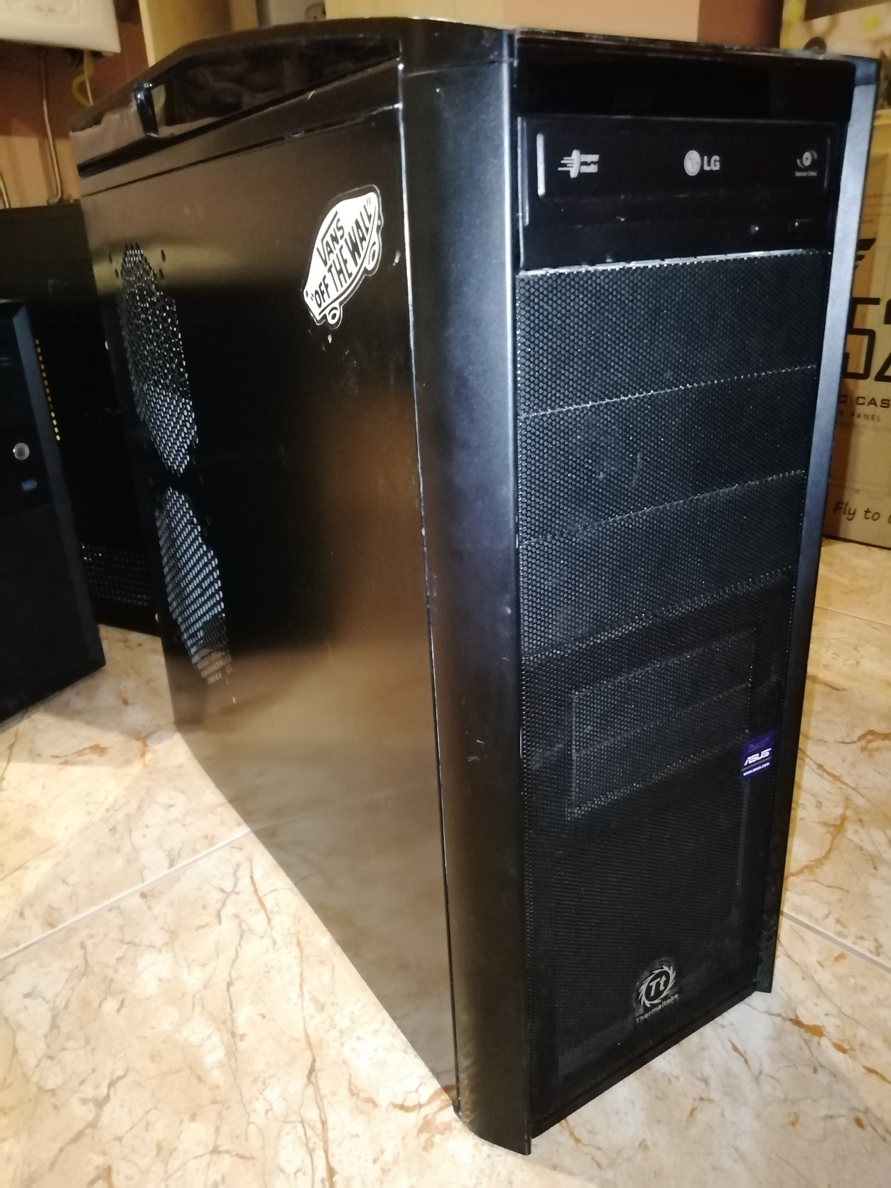 Thermaltake alsótápos atx, foglalkozós. Van felül egy nagy venti benne ami elakad saját magában. Picit megviselt már itt-ott.