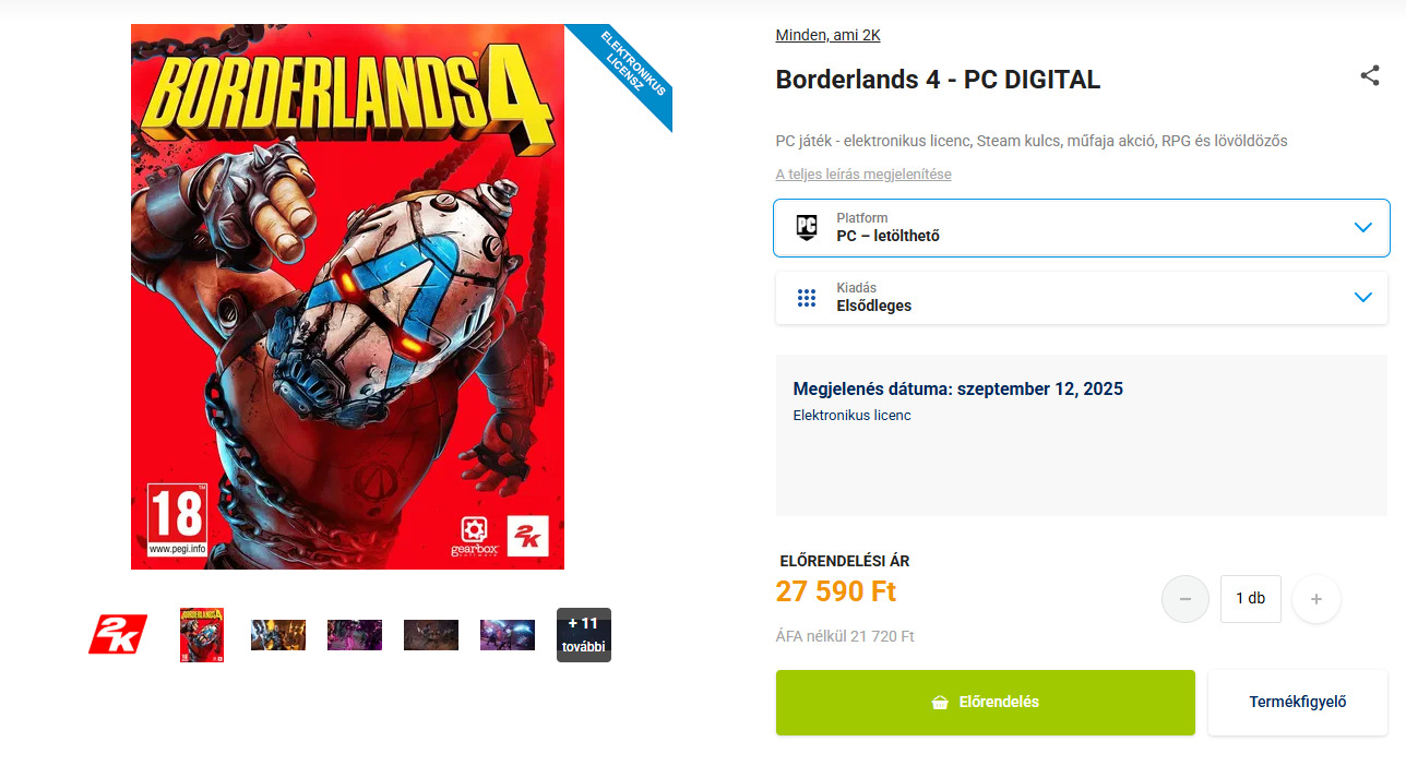 Borderlands 4 digitális promo kód eladó
