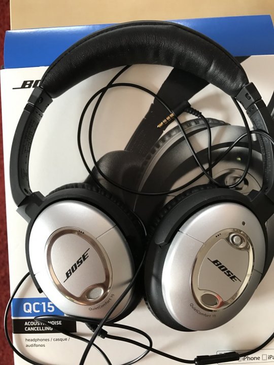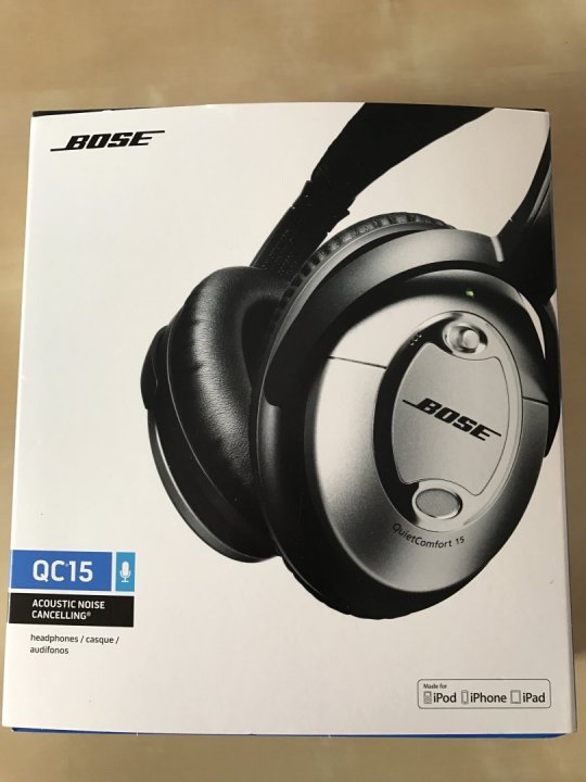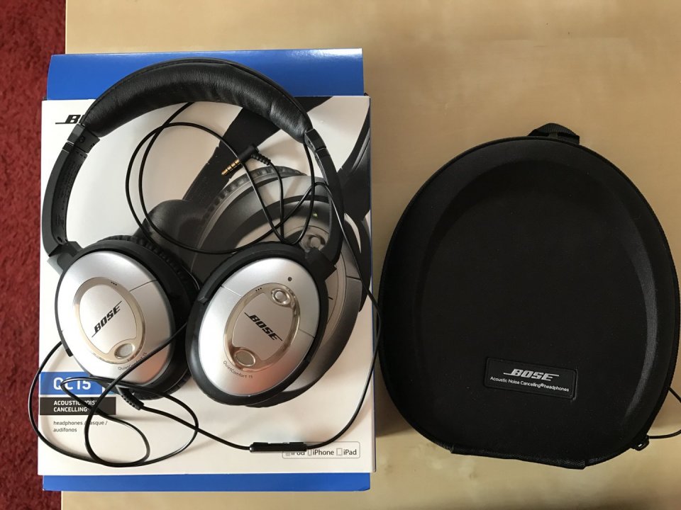 Bose QC15 noise canceling fejhallgató.