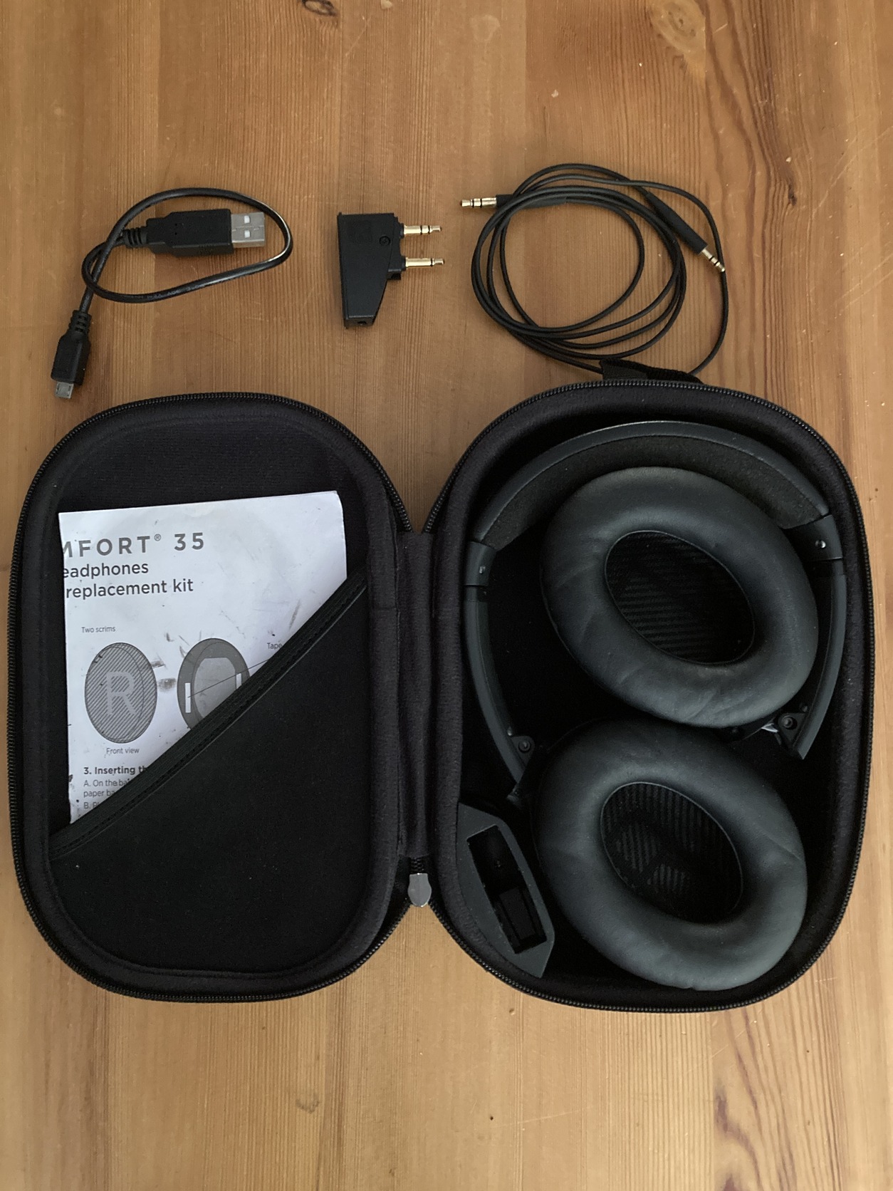 Ealdó Bose QuietComfort 35 aktív zajzáras bluetooth fejhallgató, gyári tokkal, töltőkábellel, analóg kábellel és repülőgép adapterrel.