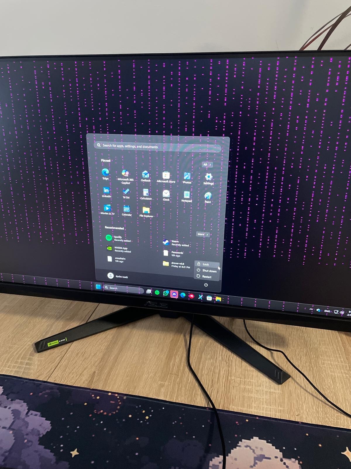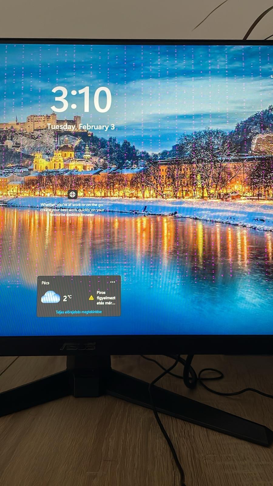 3) Bekapcsol, de később összeomlik. Látható lila pixelek (ahogy a képeken is látható).
