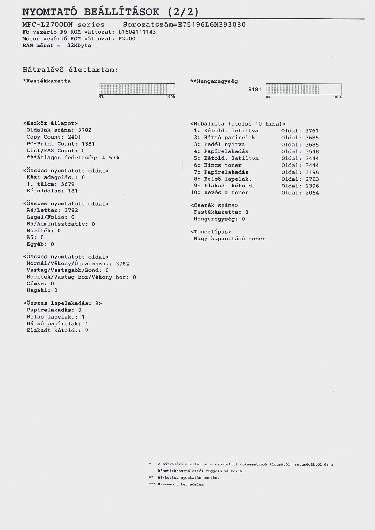 A készülékhez jár egy nagykapacitású gyári toner mely 3000 oldal nyomtatására elegendő.