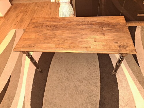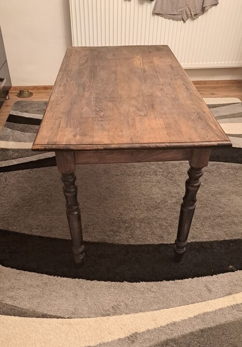 Esztergált bükk lábakkal sötét színre pácolva, lakkolva.