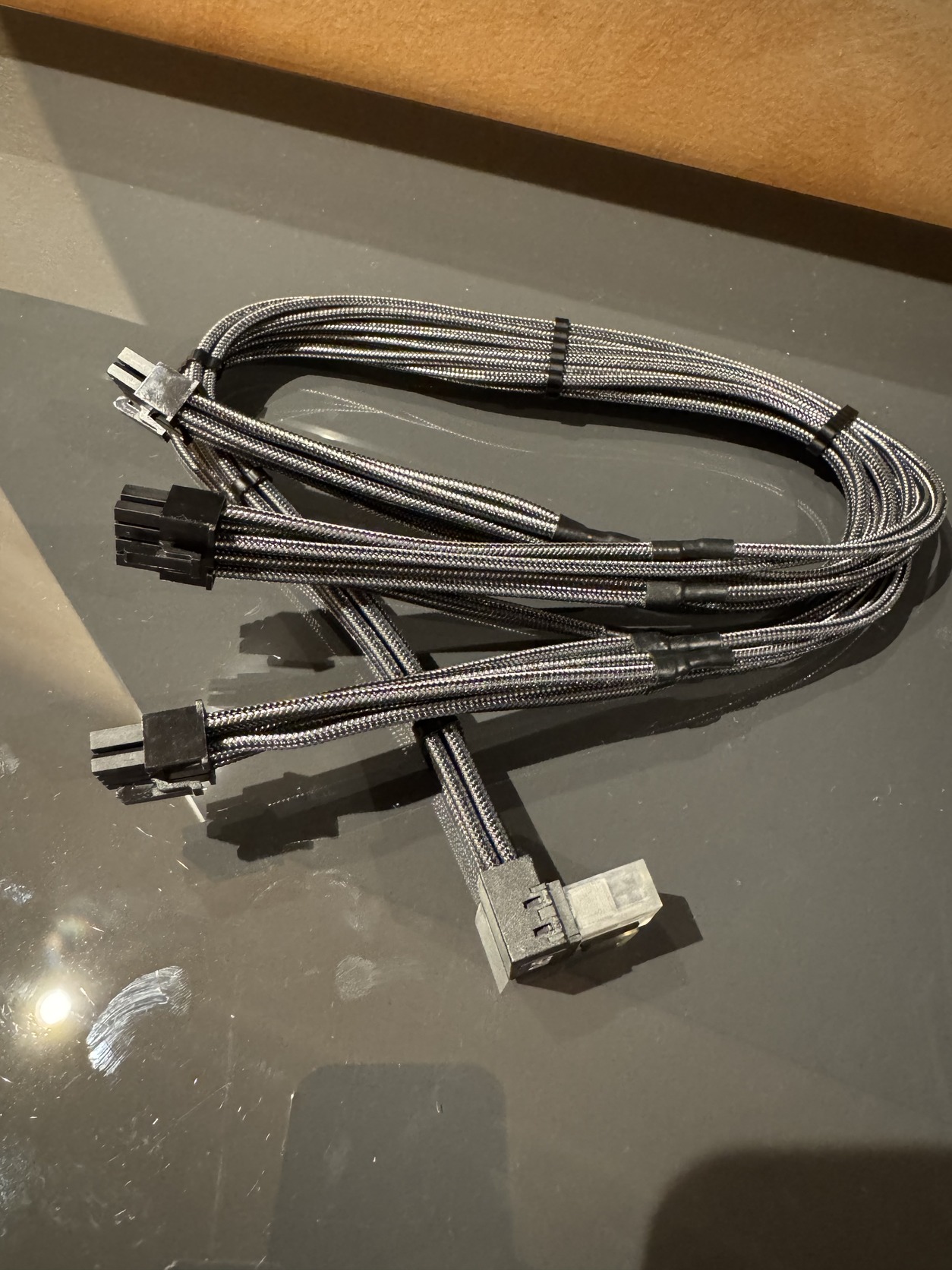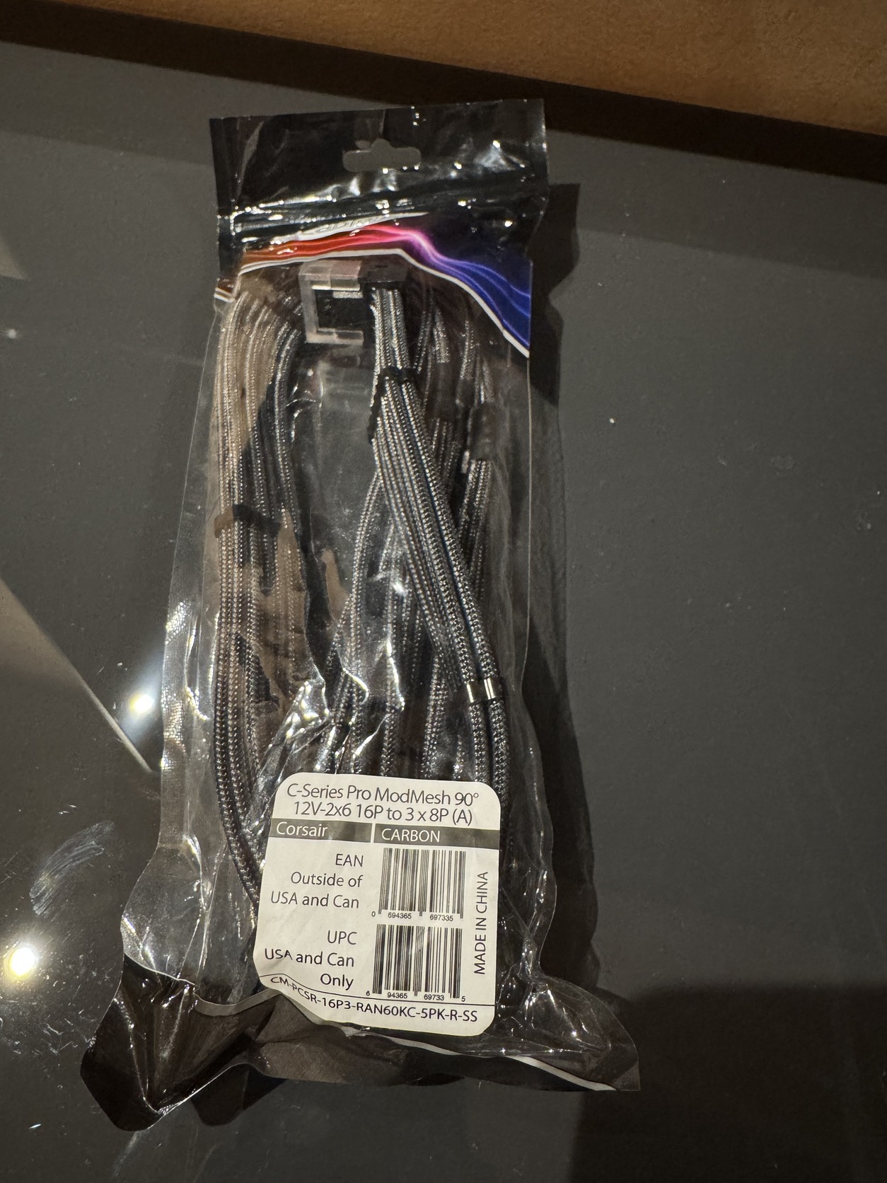 CableMod C-Series Pro csatlakozókábel - A változat, 90°, 16-tűs - 3x8-tűs PCIe, carbon (CM-PCSR-16P3-RAN60KC-5PK-R-SS)