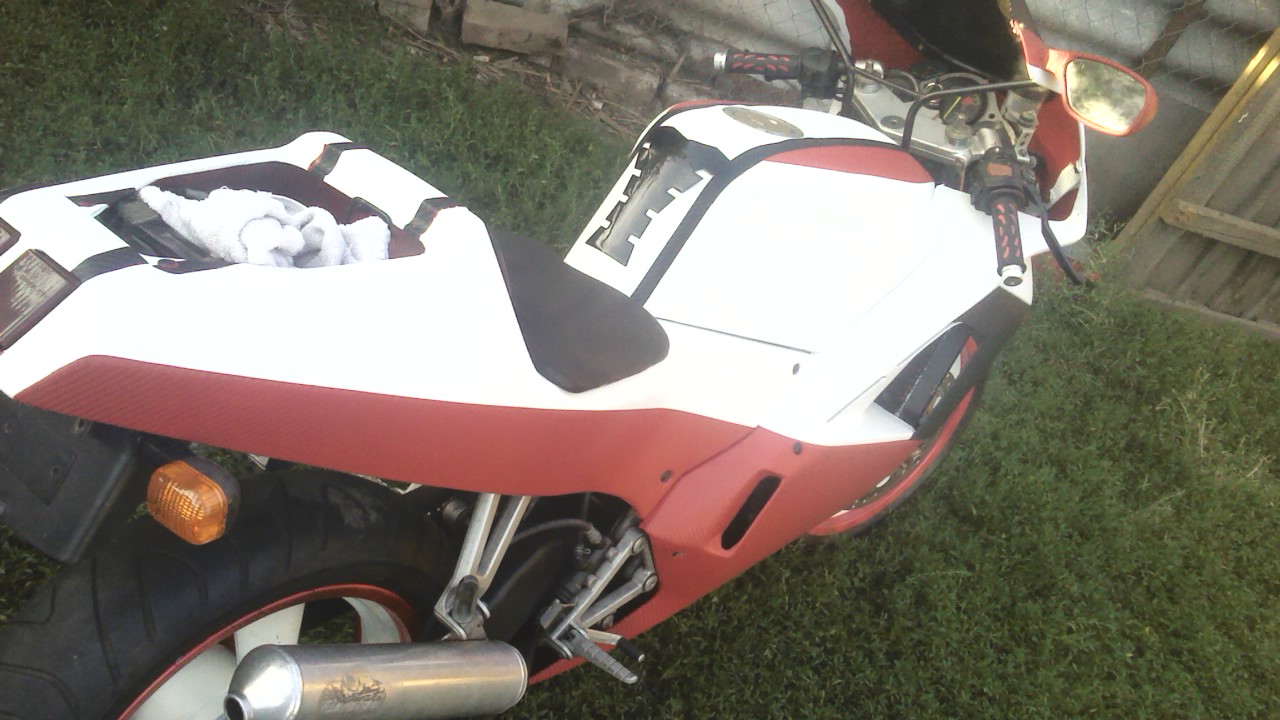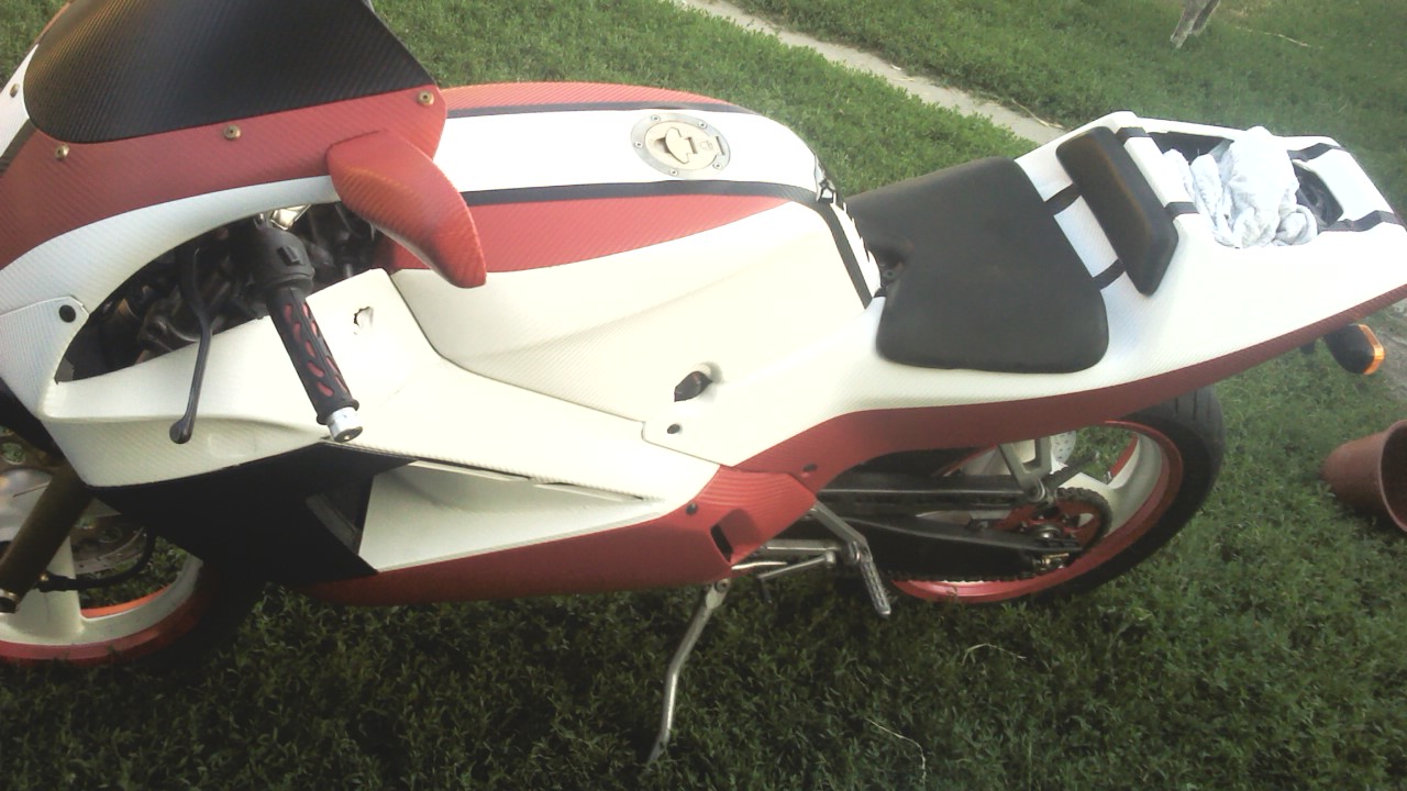 Nagyon jó és erős lett. ( gyári adat : ~34LE - ~25.5KW)Jelenleg a külsejét kezdtem el. Műanyagokat meghegesztettem szakemberrel, fel lett csiszolva és festésre előkészítve, tank és ülésalatti idom kivételével.