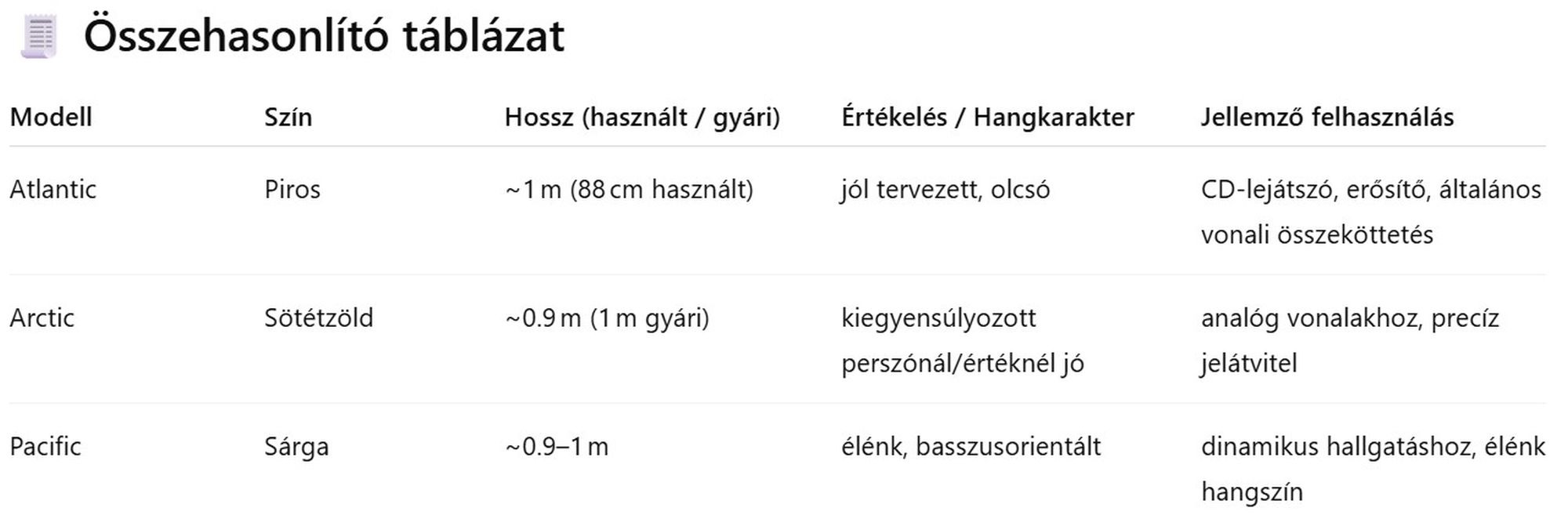 Induló audiofil kábelnek kimondottan jók!