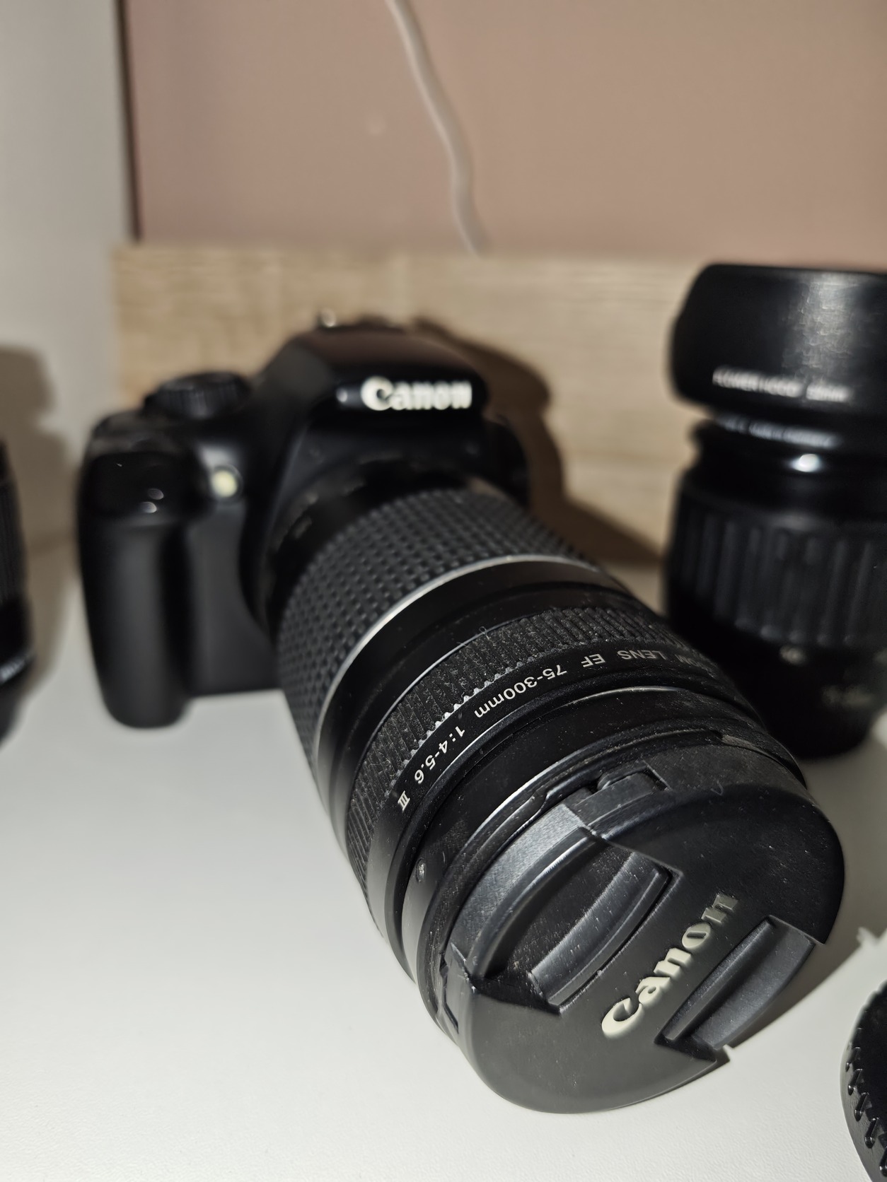 Anyagi okok miatt eladó ez a pakk. Kezdőnek, hobbi fotósnak megfelelő. Használt, egy-két apró karcokkal. A gépben kb. 25000 expo van, keveset használt. Kit 18-55mm, 75-300mm, 35-80mm, közgyűrű. Akksi, töltő, memóriakártya. Személyesen Monoron megtekinthető.