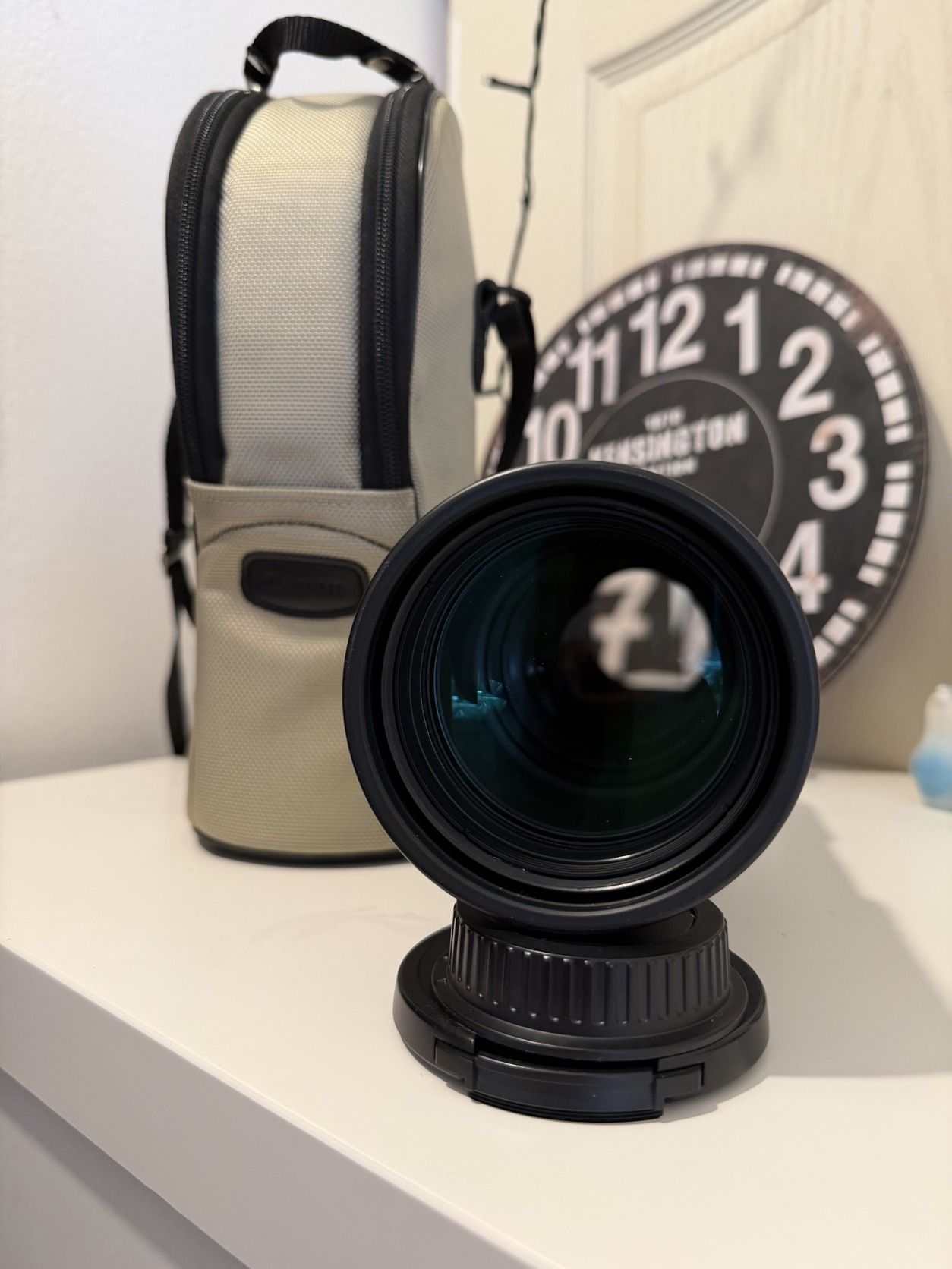 Az objektívnek mindene megvan, konkrétan új állapot, annyira hibátlan. Megvan a táskája, első-hátsó kupak, napellenző, minden patika állapotú.
