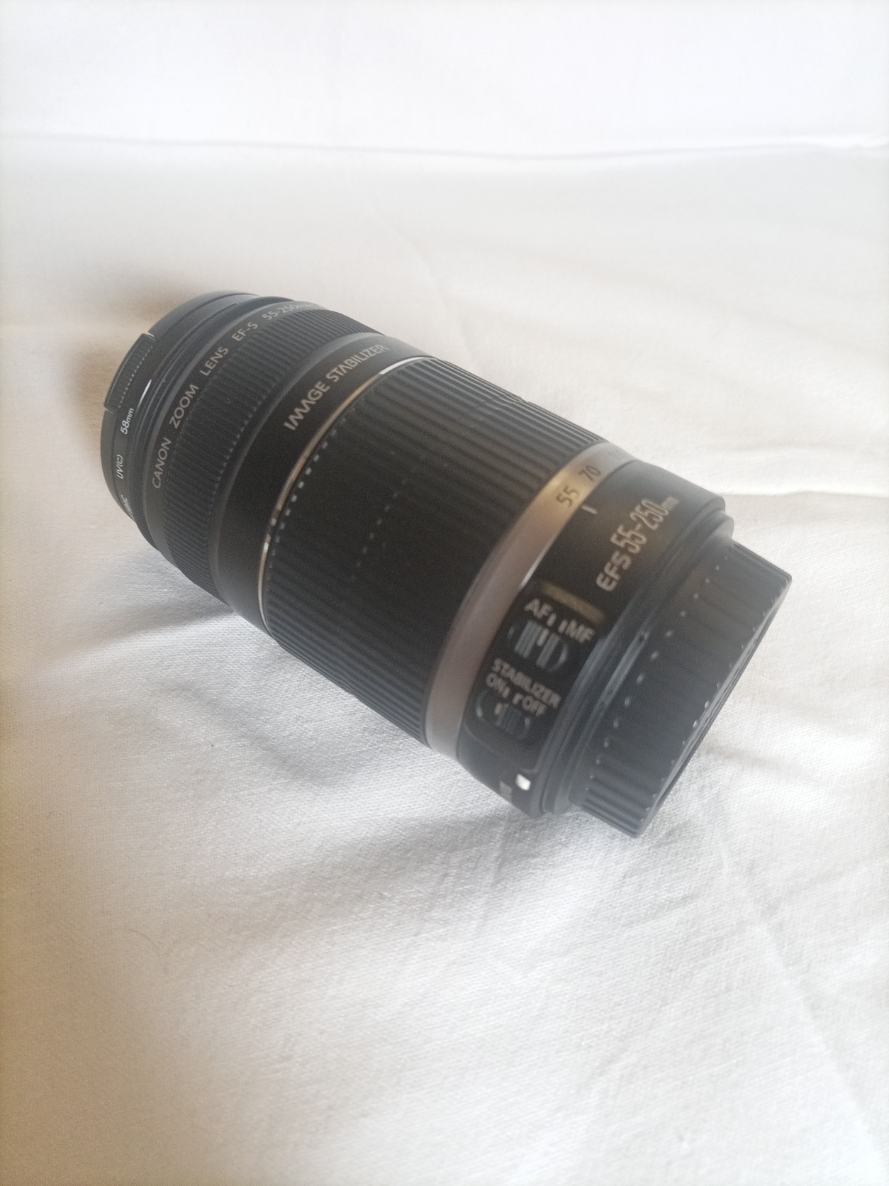 Egy teljes szett van, a váz, alap objektív 18-55mm, egy 55-250mm efs stabilizátoros objektív, egy használt canon 35-80mm, és egy vmi új, nagy objektív, 500mm- ig. A két Canon objektíven van UV szűrő (hoya, hama), 1db árnyékoló, hordtáska, töltő. Akksi jó.
