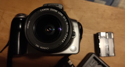 Eladó egy Canon EOS 300D DSLR fényképezőgép EF-S 18-55mm gyári objektívvel, három akkumulátorral és egy dupla töltővel, jó állapotban.