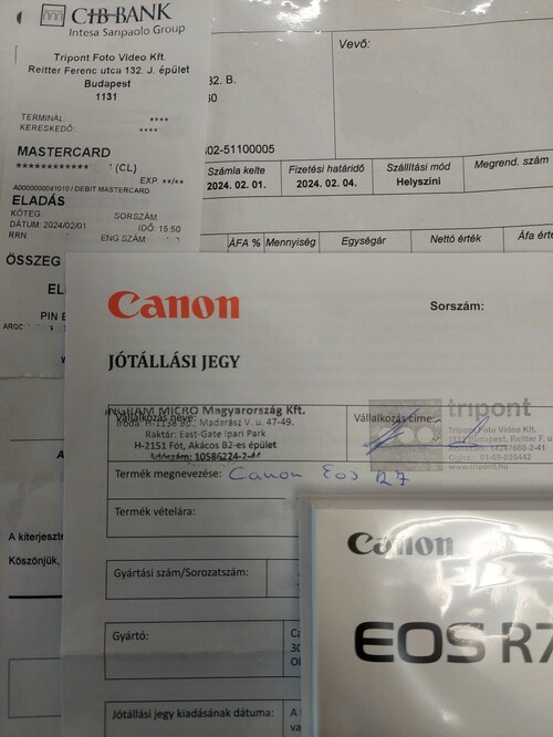 Eladóvá vált egy 2024. február elsején vásárolt Canon EOS R7 (Serial: 143034002136) MILC fényképező gép.