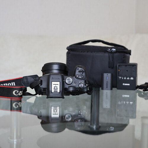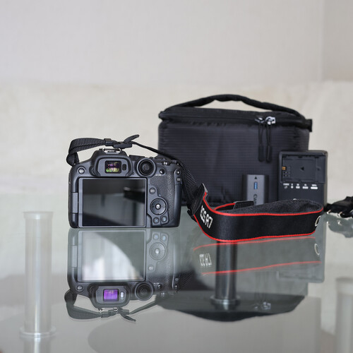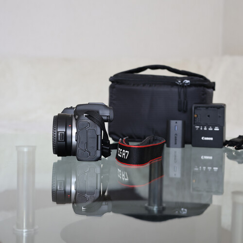 Canon EOS R7 milc fényképezőgép, bélelt kameratáskával együtt.