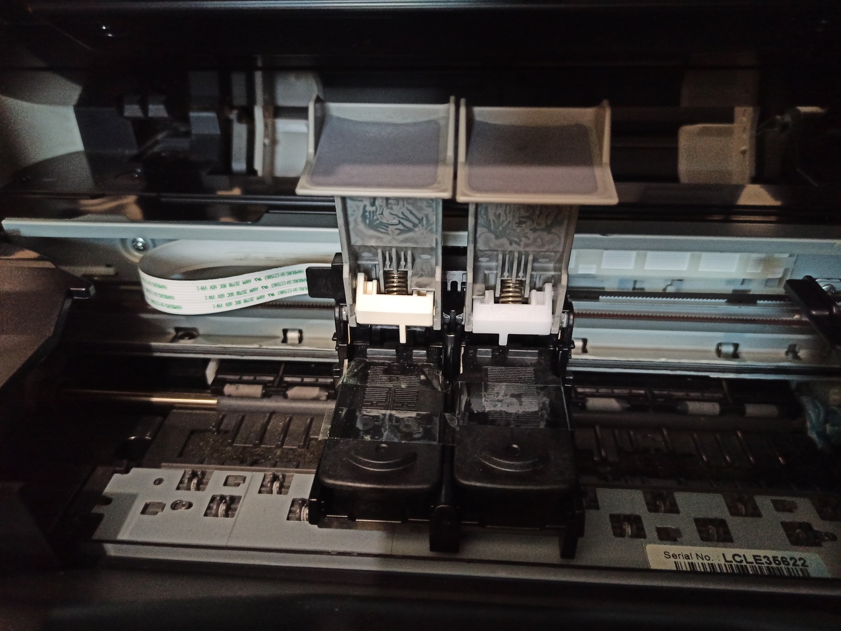 Ritkán volt használva, ezért a benne lévő színes patron teljesen beszáradt. A fekete patront kb. 8 éve vettem, azóta folyamatosan utántöltöttem, de az utóbbi időben az is elkezdett csíkosan nyomtatni, így valószínűleg ezt a patront is cserélni kell. Maga a nyomtató hibátlan állapotban van.