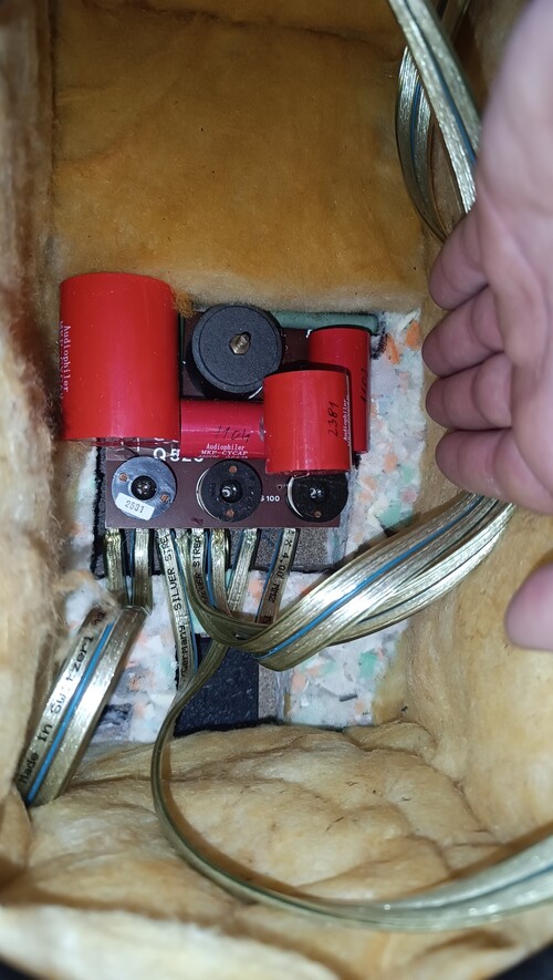 A kabinet teljesen át lett festve csiszolás után, illetve a kondenzátorok a gyári értéknek megfelelően cserélve lettek Audiophiler MKP fólia kondira. A kábel Oehlbach Silverstream 40 (2 X 4.00 mm) illetve kapott egy banán aljzatot is. A régi kerámia ellenállás Jantzen Audio Superes huzal ellenállásra lett cserélve. A tekercsek maradtak az eredeti Cantonok benne. (Ellenőriztem, hibátlan)
