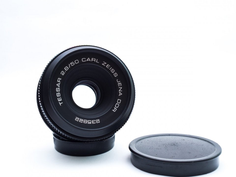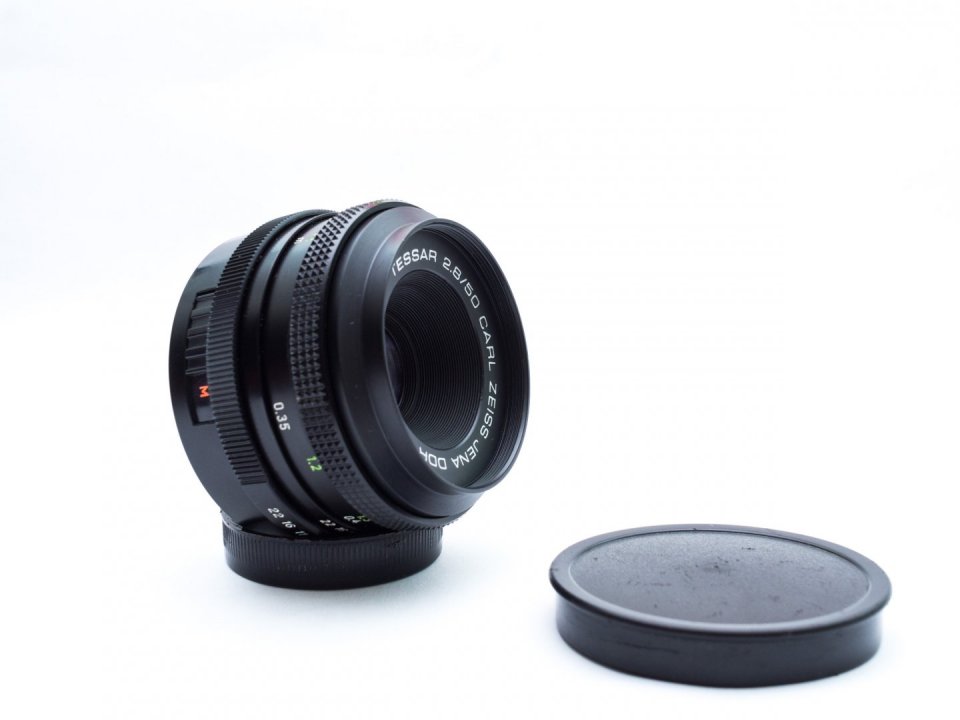 Eladósorba került a képeken látható Carl Zeiss Tessar 50mm f2,8 objektív első és hátsó kupakkal. A/M kapcsolós kivitel.