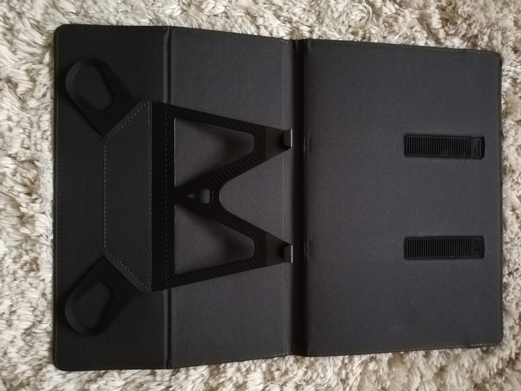 A legtöbb 9-10"-os táblagéphez illeszkedik. A tablet szilikon fogantyúk és műanyag csíptetők segítségével rögzíthető. Különböző dőlésszögben állítható.