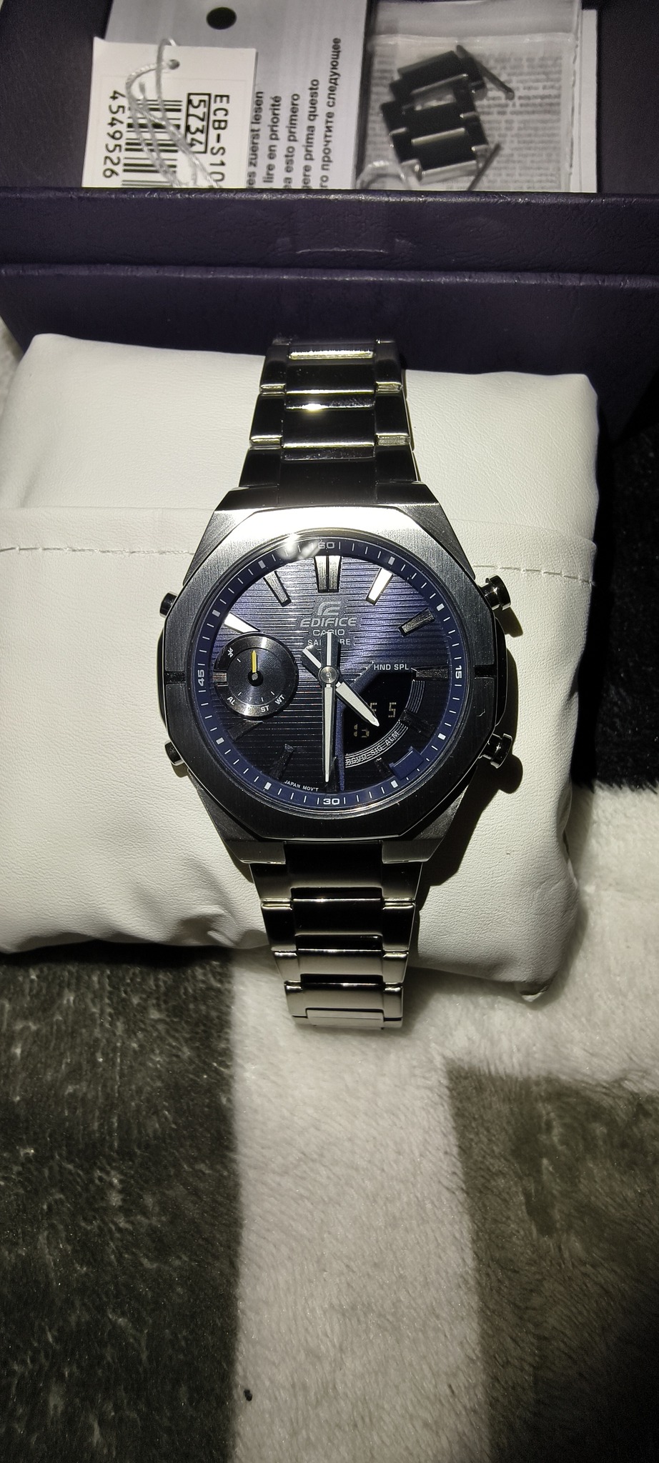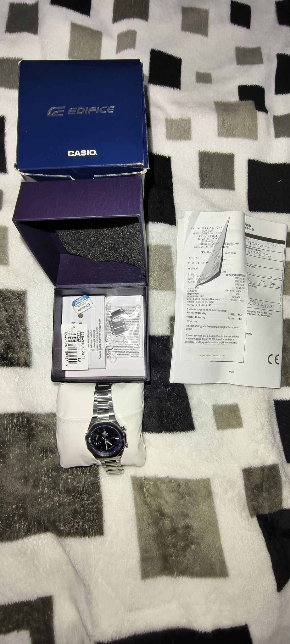 Eladó a képen látható Casio Edifice Premium Bluetooth férfi óra (ECB-S10D-2AEF), alig használt, megkímélt állapotban, dobozában, papírjaival, garanciával (2025.10.26.-i vásárlás).