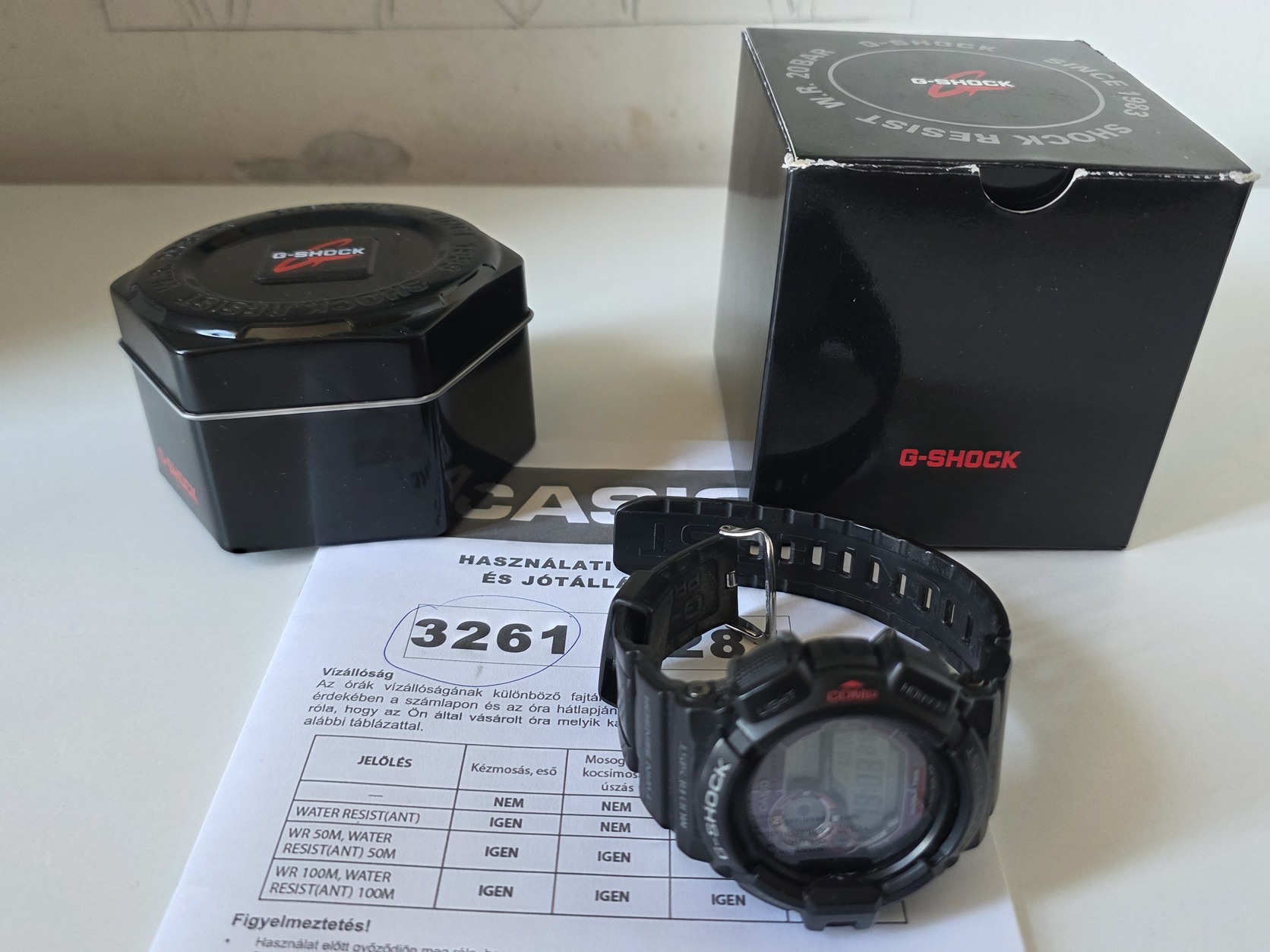 Eladó CASIO G-SHOCK MUDMAN G-9300-1ER óra minden tartozékával ,használt de szép állapotban a bujtatón és a szíj egyik belső oldalán kopás van fotóztam .Reális keretek között alkuképes .Már nincs garancia .