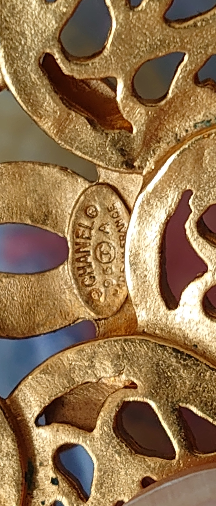 Míg a legtöbb Chanel bross tömör fémlap, ez a modell "ajouré" (áttört) technikával készült.