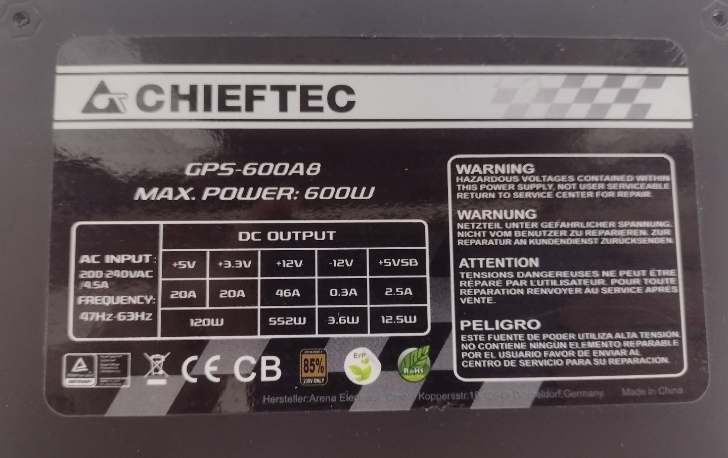 CHIEFTEC 600W tápegység