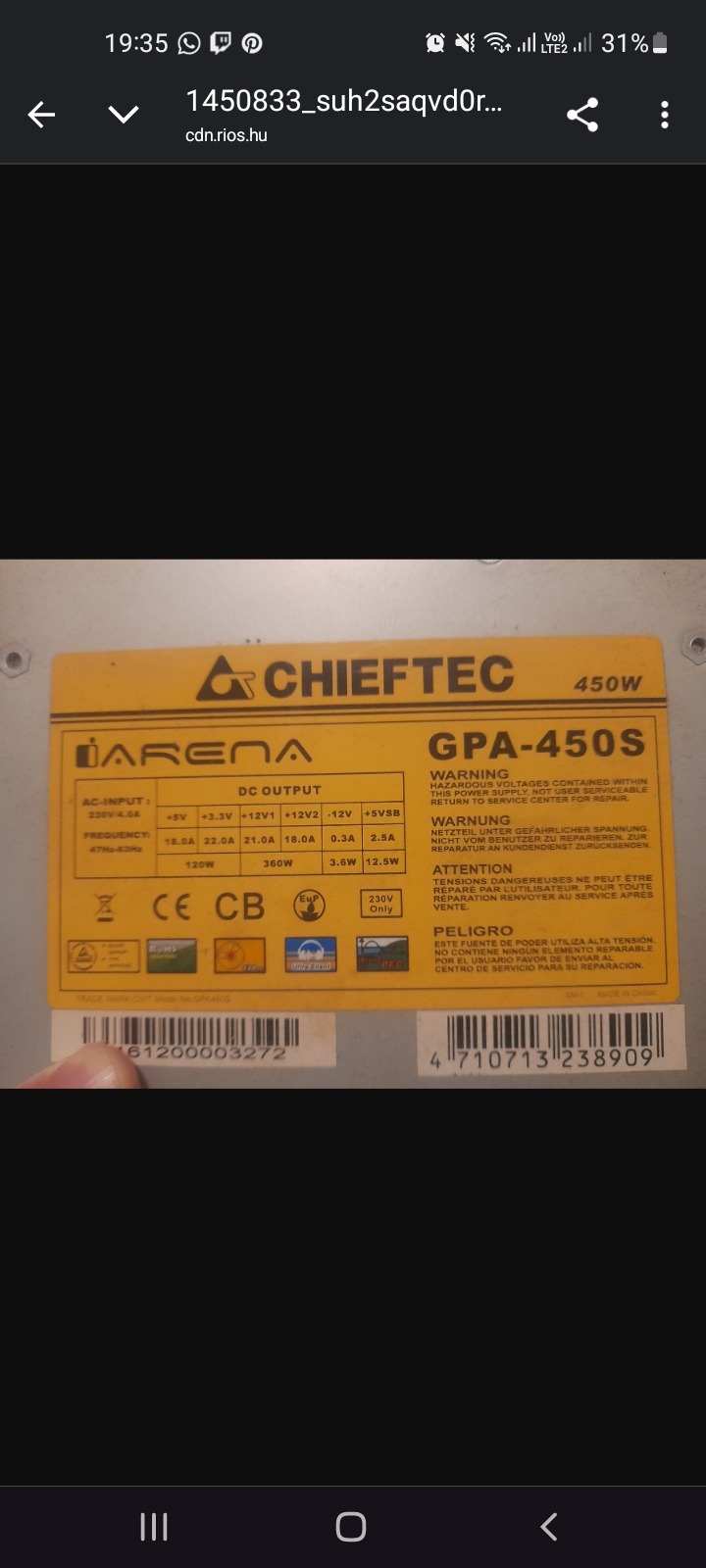 Eladó ez a képen látható régebbi tápom sérülés nincs rajta és jól működik sosem volt híbája