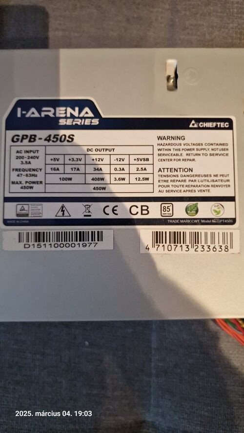 Tápegység teljesítménye: 450 W