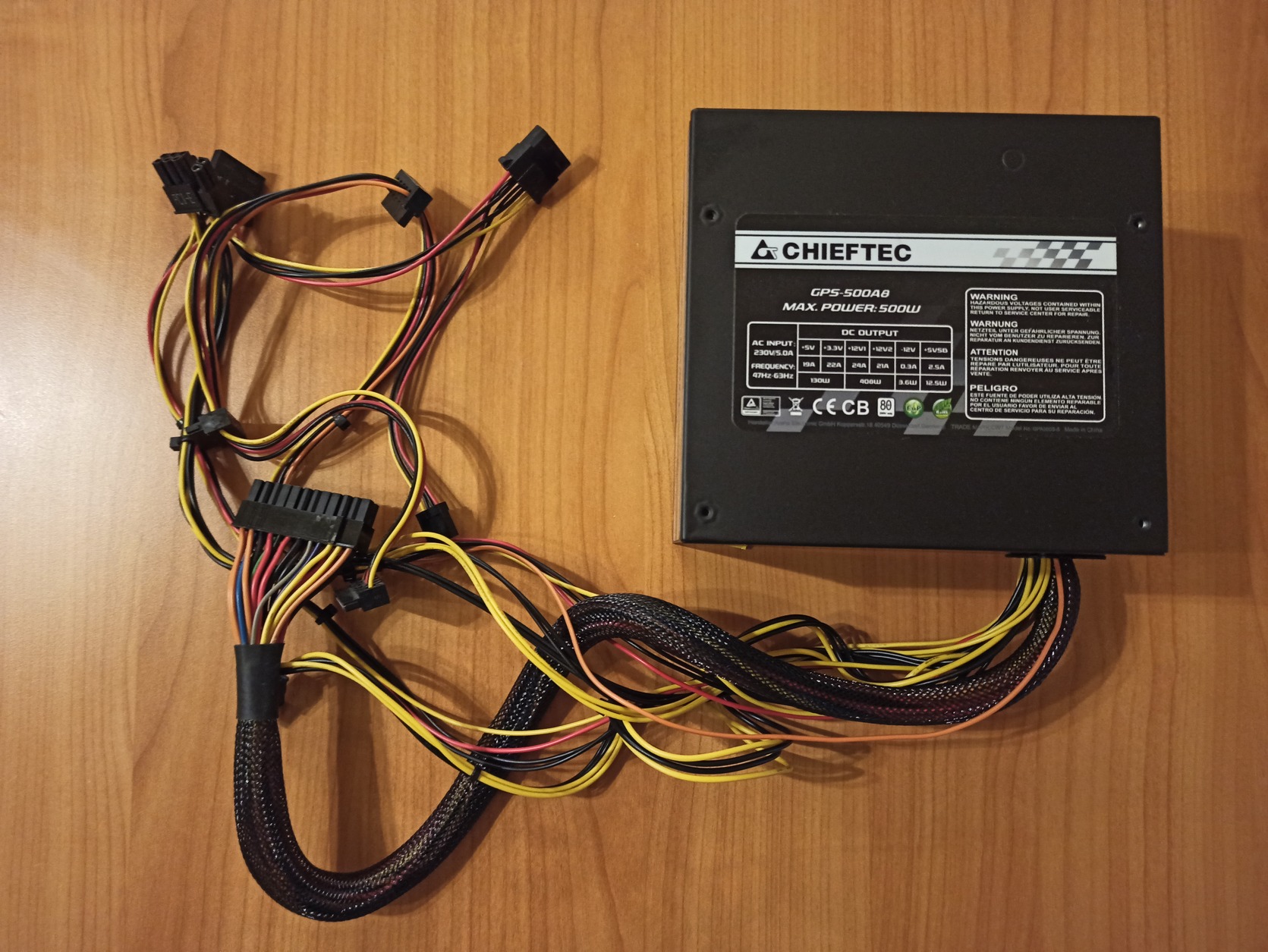 Eladó Chieftec tápegység saját doboza nélkül, 500W teljesítménnyel és 80+ hatásfokkal, mellé ajándék tápkábellel. Az alábbi csatlakozókkal felszerelve:
