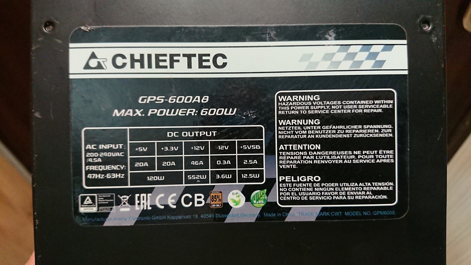 CHIEFTEC Smart Series 600W (GPS-600A8)