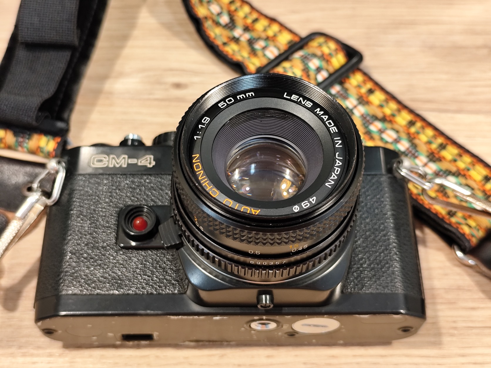 Eladó egy szép Chinon CM-4 analóg fényképezőgép (PK bajonettes). Az objektív egy Chinon 50mm f/1.9 első sapkával. A géphez jár egy korhű nyakpánt is.