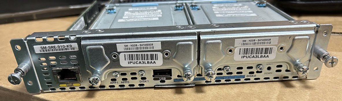 Eladó Cisco 2911 E1, FXS, és FXO kártákkal, valamint SM-SRE-910-K9 virtualizációs modullal (4GB RAM, 2x 500GB HDD).