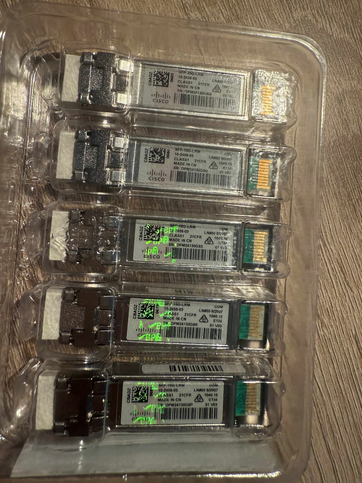 Eladó a képeken látható Cisco SFP-10G-LRM típusú 10GBASE-LRM SFP+ optikai modul.