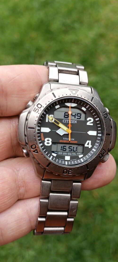 Eladó-cserélhető Citizen Promaster Aquamount Titanium Diver(JP3050-55W).Használt,szép állapotban.Csak az óra,tartozékok nélkül.A szíj 20cm kerületű csuklóra jó.WR200,kn 43mm,a tok 49mm széles.Cserébe quartz Casio,Citizen,Seiko,Invicta,Sector,Barbos, Timex,Luminox,Vostok...(divatóra nem)érdekel.Átadás-csere személyesen BP XX,vagy dél-pest más részein.Esetleg előre utalás után foxpostal küldöm(1500ft).
