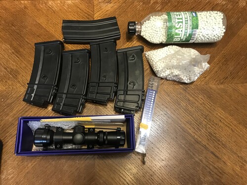 Keveset használt airsoft csúzli, behajtható válltámasszal és hozzá való kellékek eladók. A nagyobb kapacitású akksi ki van vezetve, az eredeti állapot visszaállítható. Ha ki akarod próbálni, hozz akksit a megfelelő csatlakozóval (8x3300mah/1.2V pakkal ment).