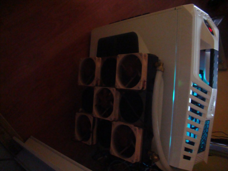 Oldallapján van 6 furat, külsö radiátor rögzitése miatt (Phobya Extrem Nova volt rajta), mely eltüntethetö, vagy a speciálisan ide esztergáltatott távtartókat is tudom adni hozzá. Doboza, tartozékai megvannak.