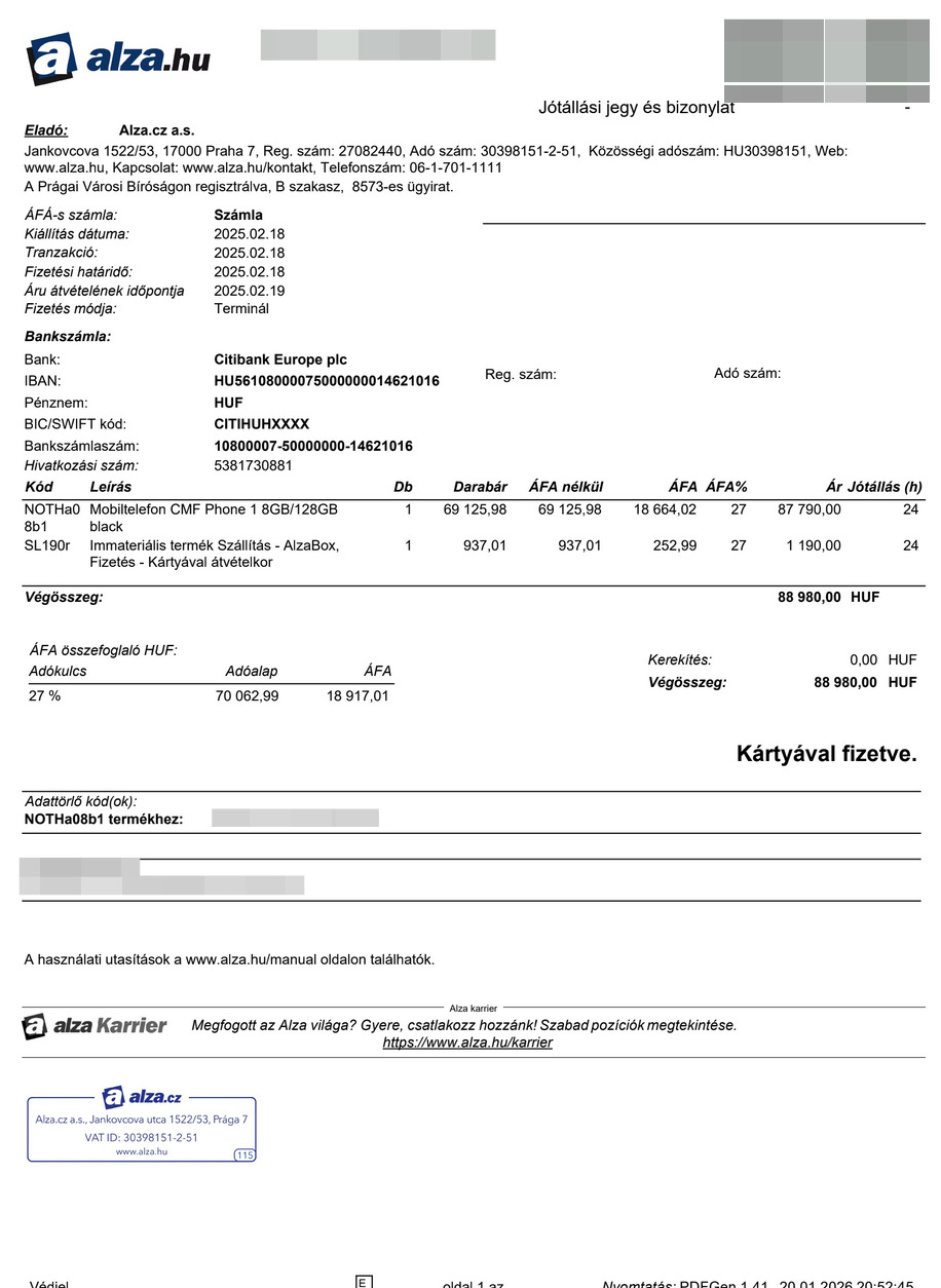 Kihasználatlanságból eladó egy karcmentes hibátlan CMF Phone 1.