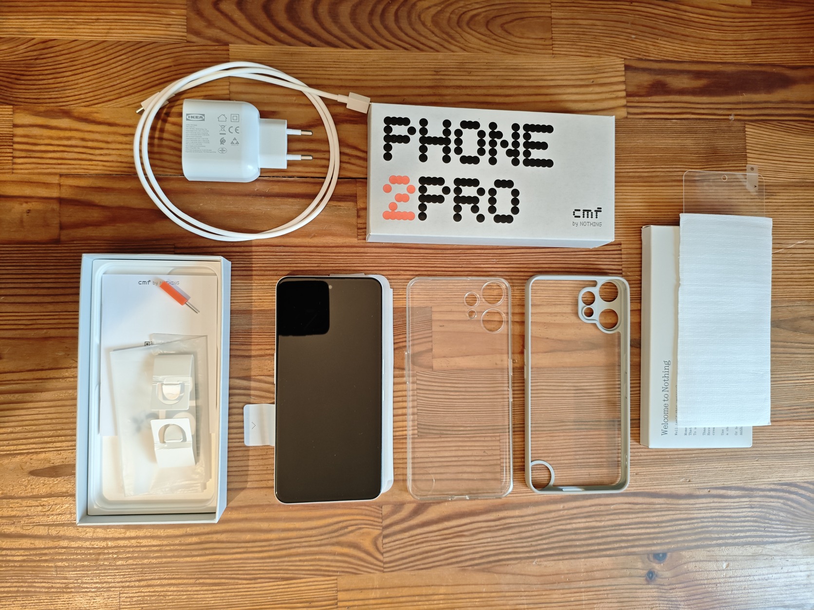Adok hozzá egy átlátszó és egy design tokot, üvegfóliát, valamint külön a telefonhoz vett 45W-os usb-c IKEA töltőt, amivel ki lehet használni a teló 33W-os gyorstöltési képességét (PPS). Alapértelmezésben nem adnak hozzá töltőt.