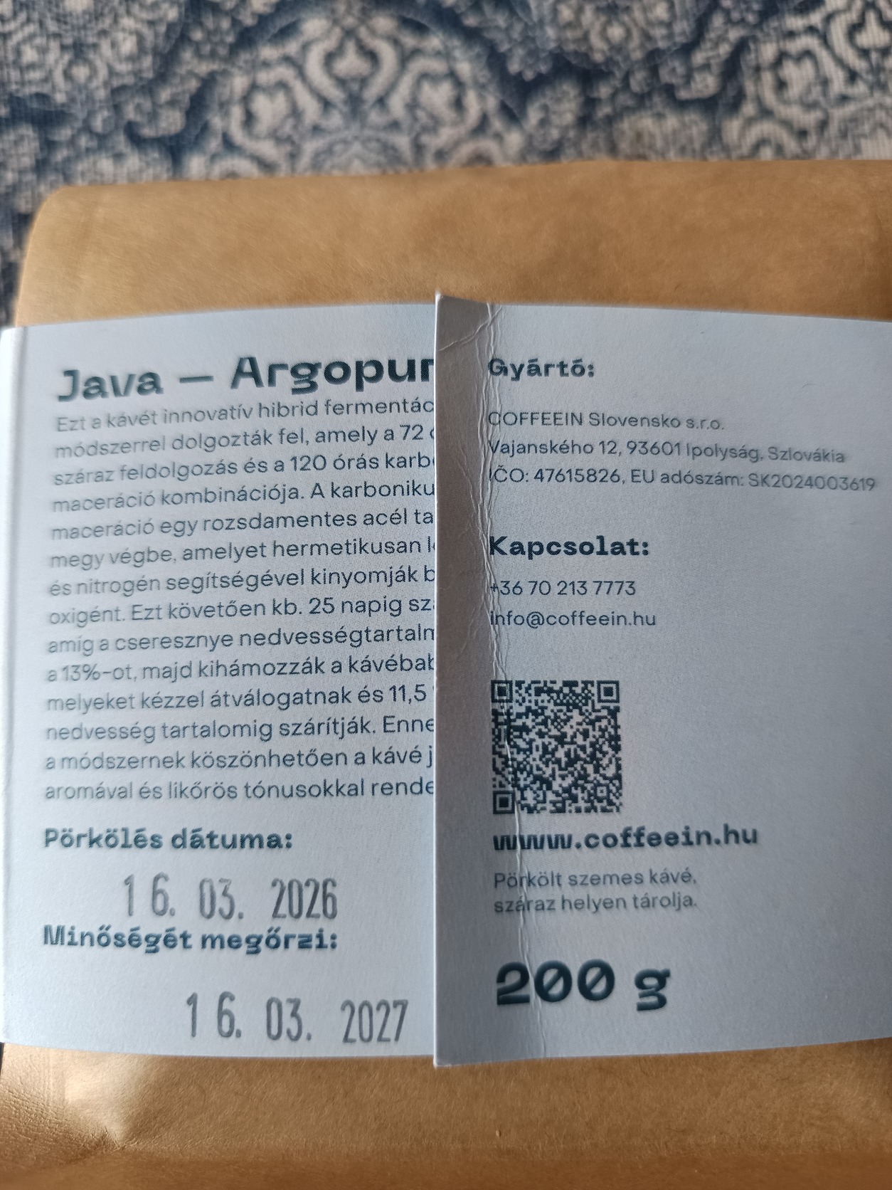 Eladó egy bontatlan csomagolású, szlovákiai Coffeein pörkölőből származó Jáva Flowertron kávé. Ez egy különleges, kísérleti feldolgozású (230 órás fermentáció), rendkívül komplex, édes és virágos ízvilágú tétel az indonéziai Argopuro farmról.