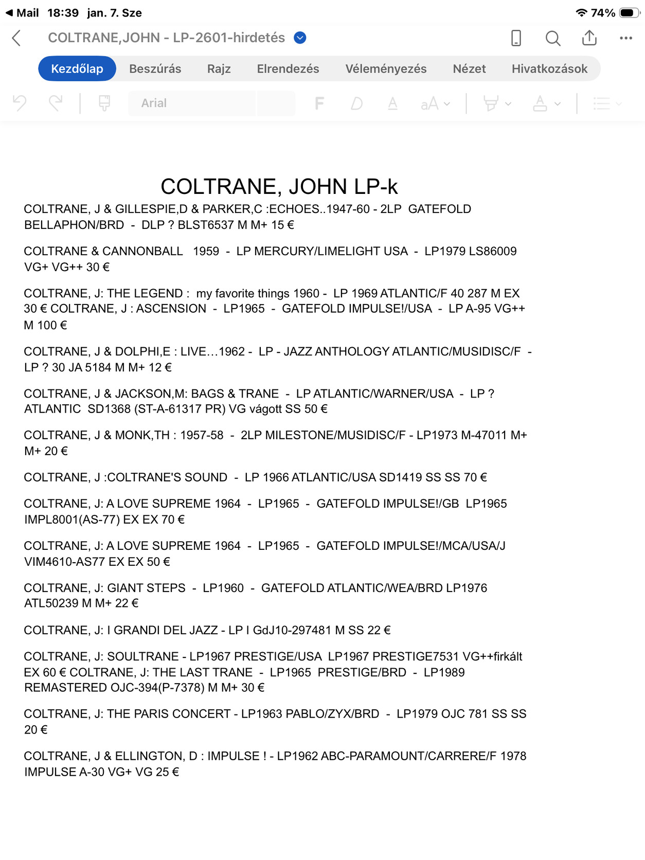 Elaadó minőségi John Coltrane jazz vinylek.