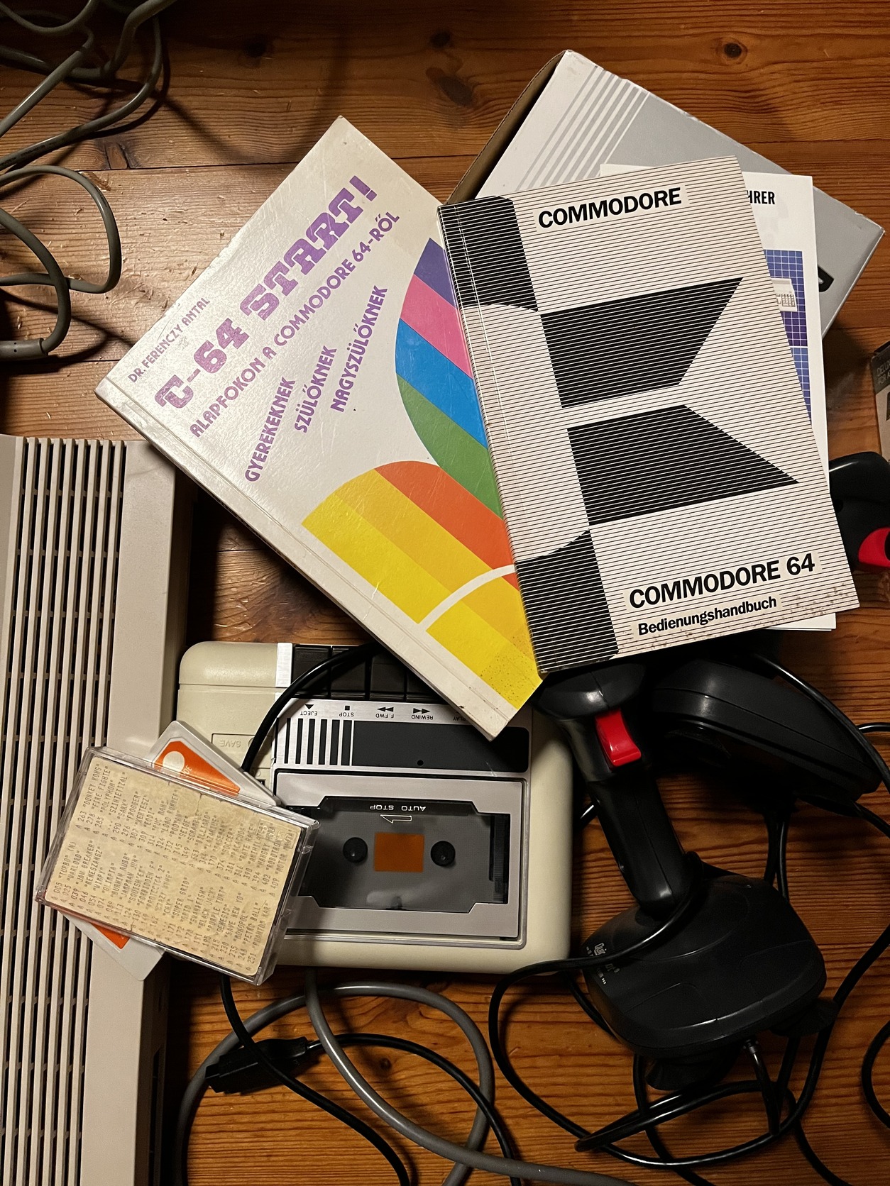 Minden patika állapotú, a magnóhoz doboz is van, a joystick-ok szinte újak. Egy alig vagy szinte nem is használt szett örökségből. Kipróbáltuk, élveztük a retro érzést, de nálunk nincs kihasználva.
