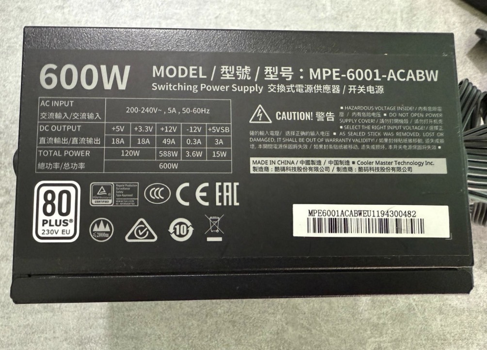 ÉRTÉKELÉSRE VÁR! Cooler Master 600 Wattos 80 Plusz Fix Kábelezésű Tápegység