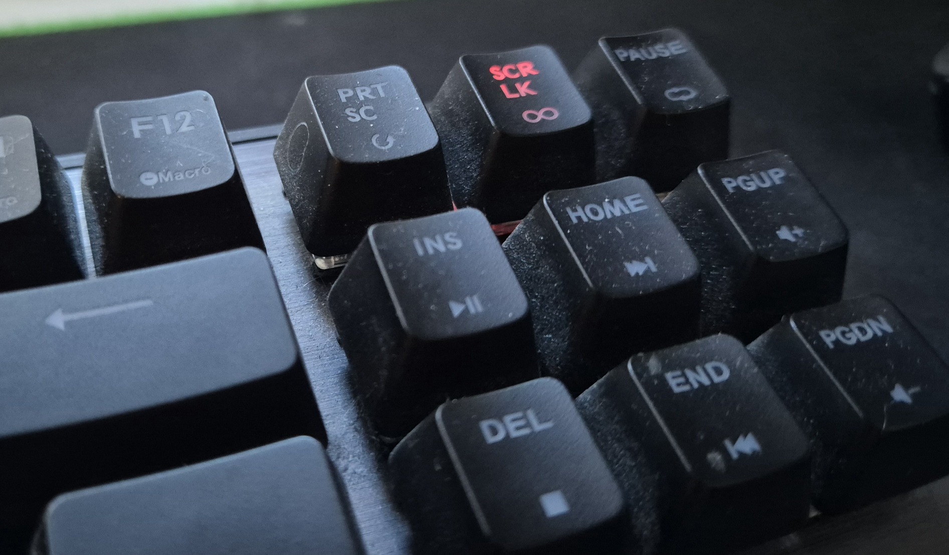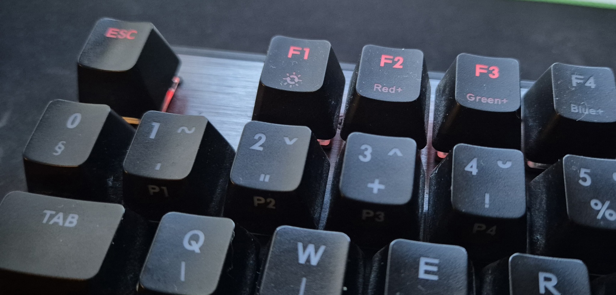 Kis hibával: az ESC, F1, F2, F3, SCR LK billentyűkön a piros szín halványan folyamatosan világít, erről töltöttem fel extra képeket. Lehet, hogy javítható egy szétszedés és igazítás után, én nem foglalkoztam vele mert fehéren használtam.