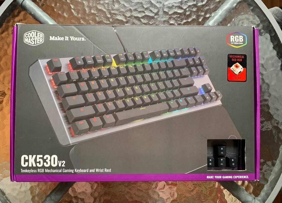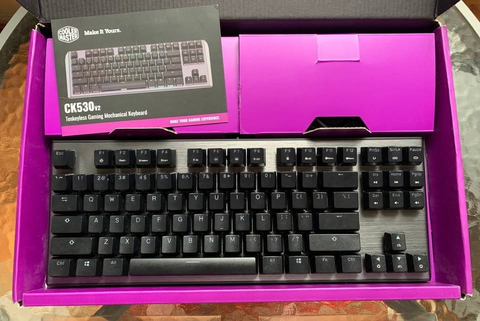 Eladó egy Cooler Master CK530 V2 billentyűzet piros mechanikus kapcsolókkal (Red switches) és US kiosztással. Jó állapotban van, de néha az S és M gombok nem működnek elsőre — nem komoly hiba, kenés segíthet. A dobozon kívül más nincs a csomagban. RGB világítás, alumínium felső panel, kompakt kialakítás (nincs numerikus blokk).