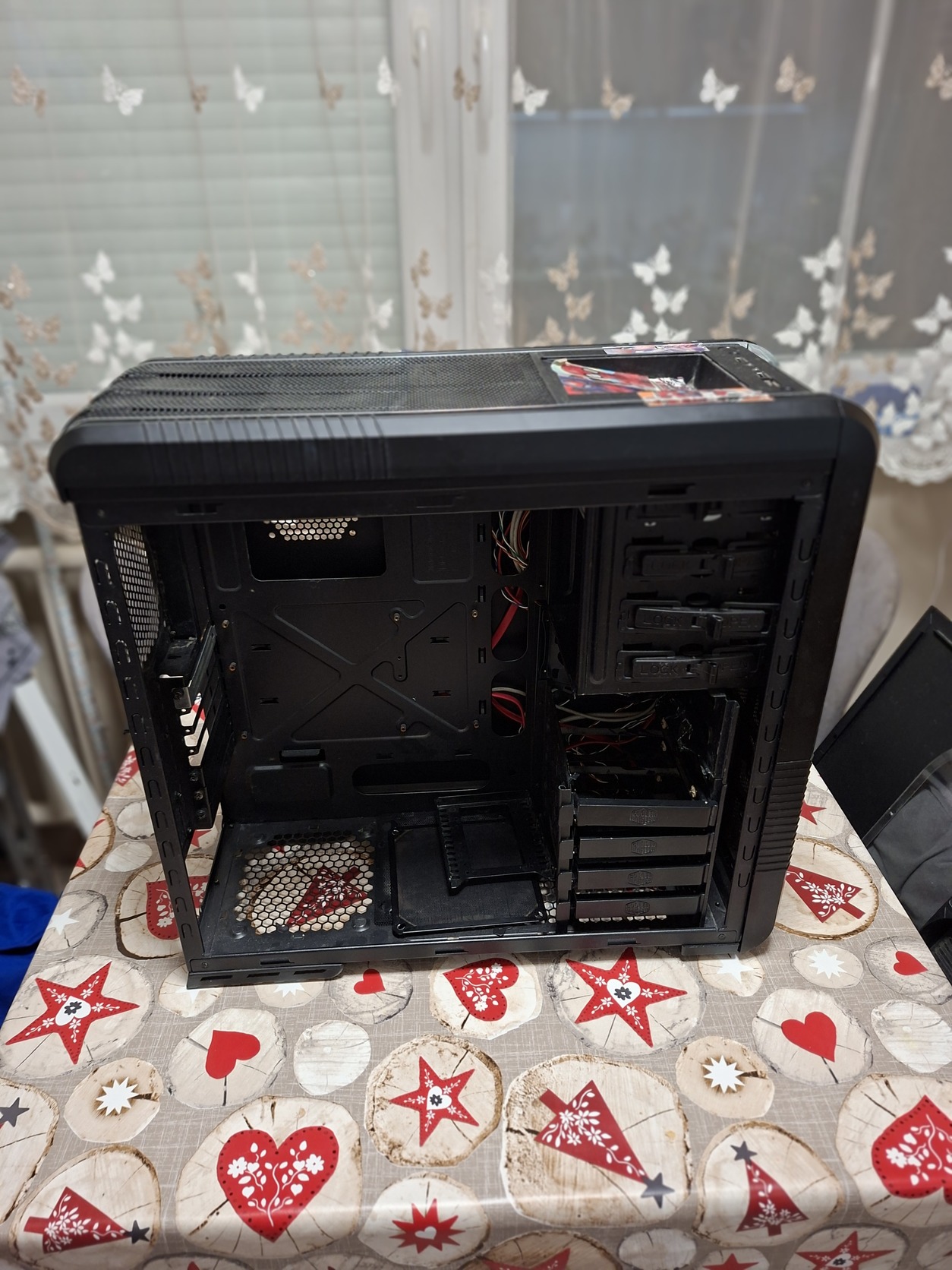 Budapesten IV. kerületben eladó Cooler Master CM690 II.-es gépház. Nem mai darab, viszont elég masszív, jól szellőző gépház. A belseje egy nagyobb videókártya miatt kicsit át lett alakítva, így hiányoznak merevelemez tartók belőle. A kezelőpanelen lévő csatlakozók/gombok működnek. A képeken látható állapotban (az oldal plexis takarólemez megvan).