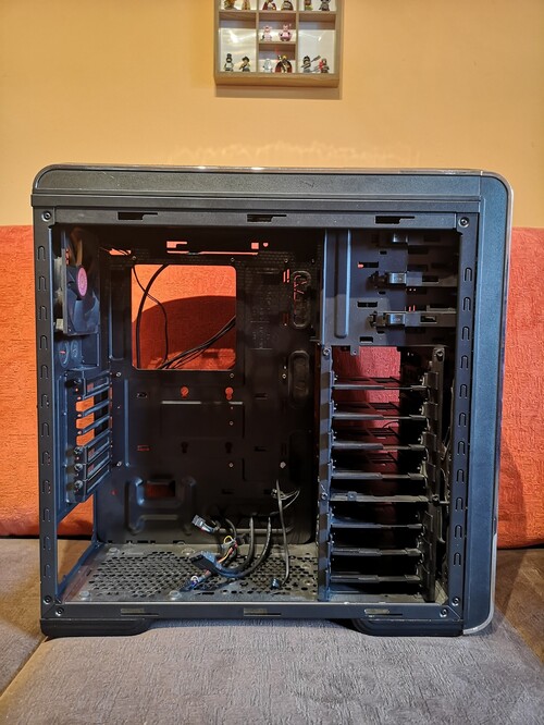 Eladó a címben szereplő pompás kis (nagy) házikó. Anno használtan vettem. Apróbb festékhibák vannak rajta, valamint hiányzik a felső (fiók)takaró műanyag, a HDD keret gyári rögzítő csavarja (2-3 db talán, de sima csavarral pótolható). Továbbá mivel a házat korábban fektetve használták, ezért ragasztva van rá 4 db kis láb. Ezekről mind van kép az első kommentben. Egyébként hibátlan, nincs elhajlítva, nem recseg, nem rezeg, rugdosva sem volt. Tökéletesen ellátja a dolgát. Hátul 120 mm, elől 200 mm venti pörög.. Eladás oka: nekem kicsit nagy lett.
