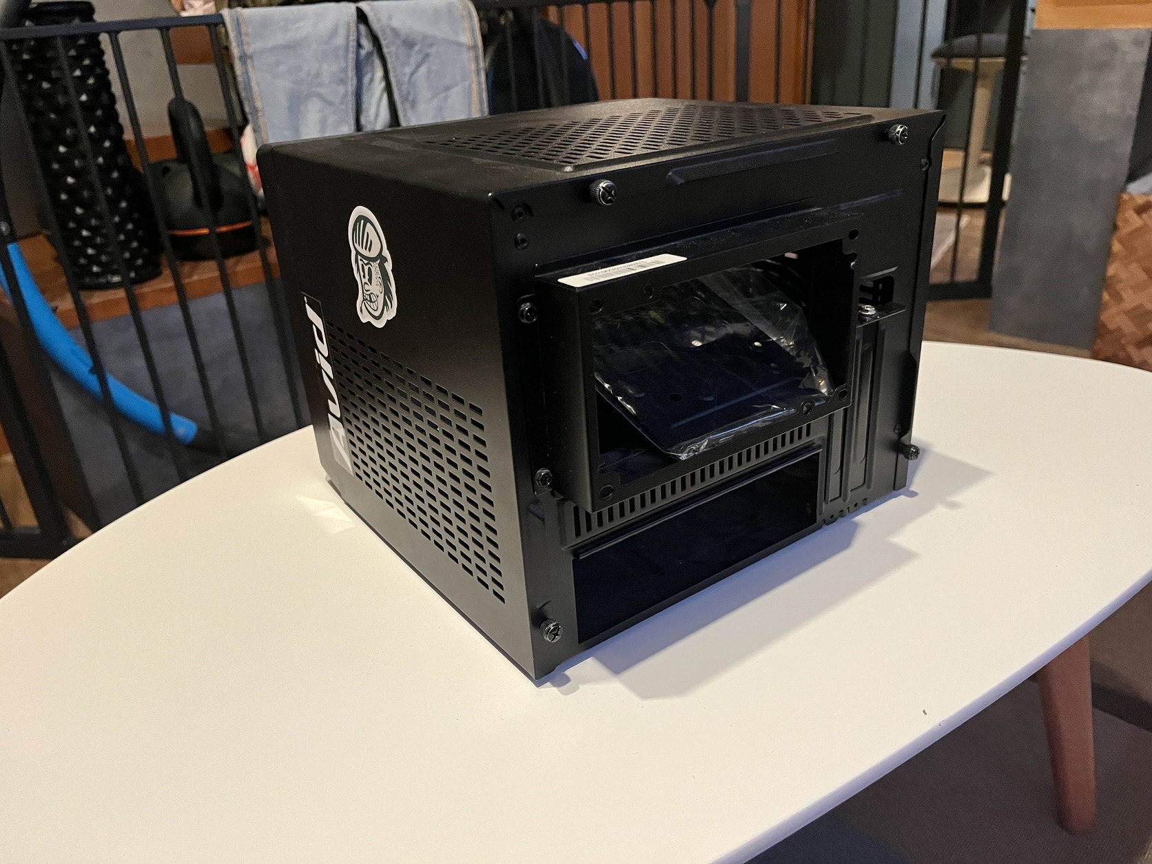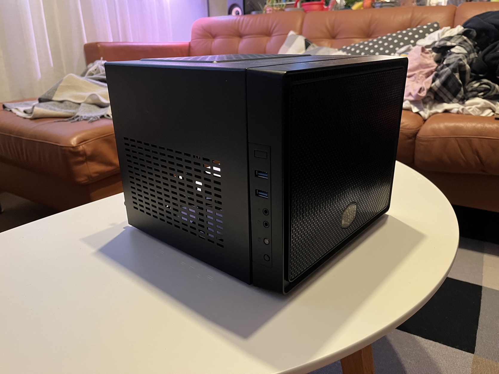 Kiválló mini ITX ház, nekem 2 x 3,5” és 3 x 2,5” lemez lakott benne. Szerettem volna egy harmadik 3,5” merevlemezt is ezek mellé, ezért nagyobba költöztem.