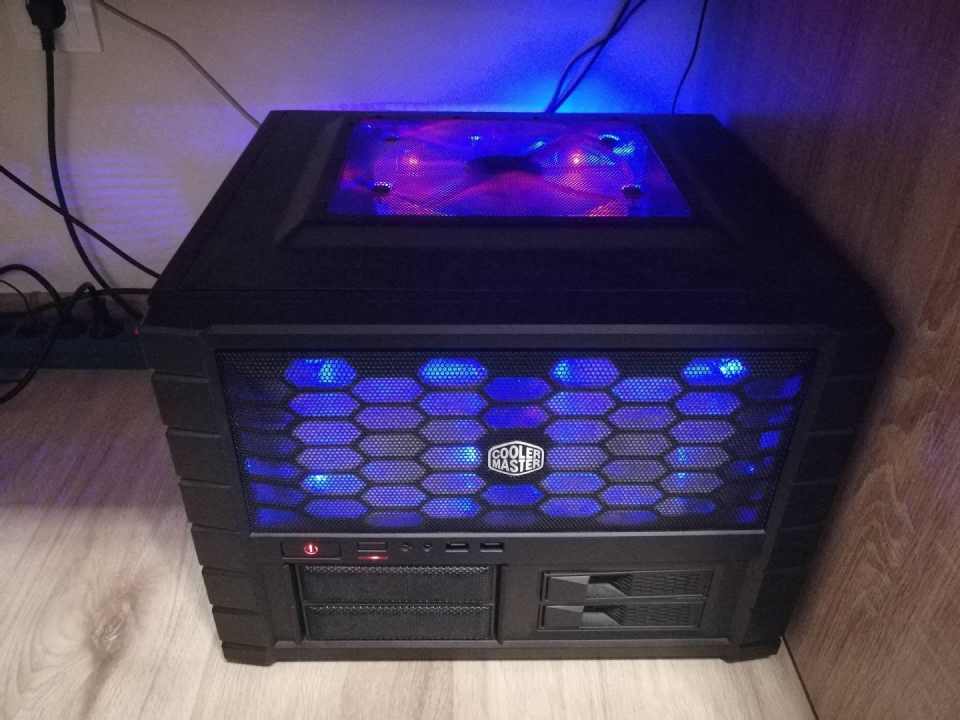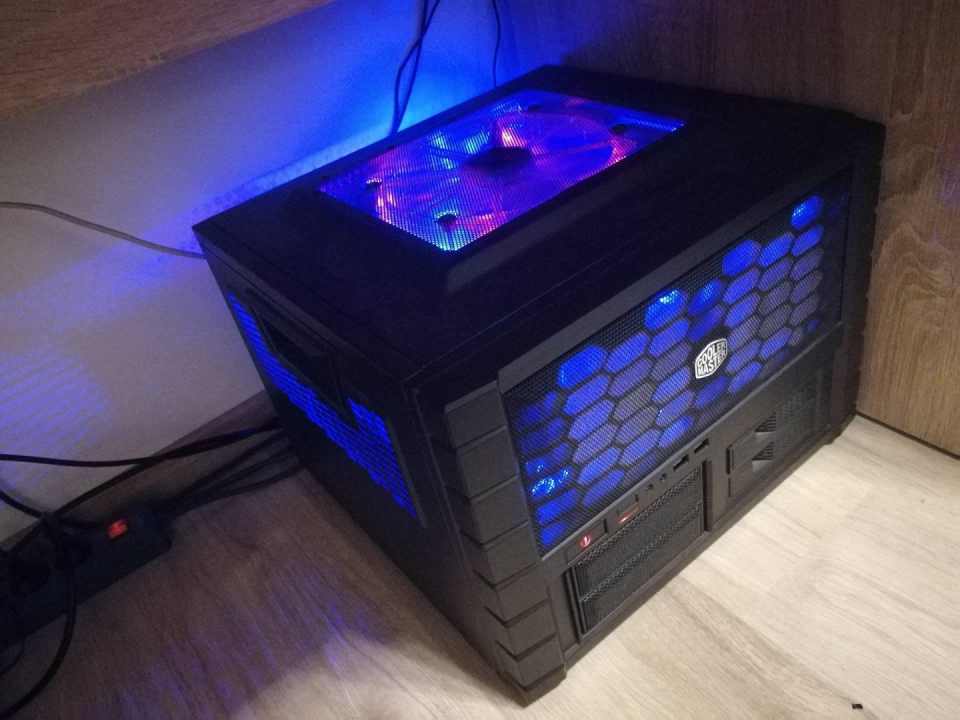 Eladó jó állapotban lévő Cooler Master HAF XB ház, 5db kék színű ventivel (2db 140, 2db 120, 1db 200) és kék led csíkkal.