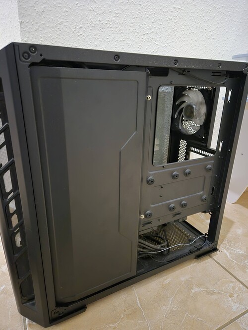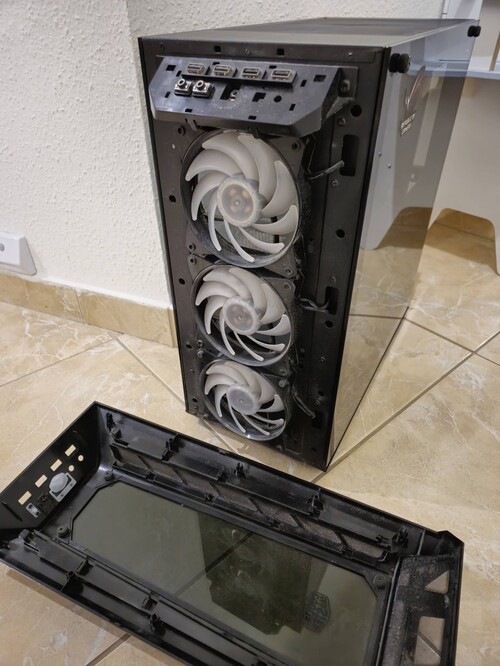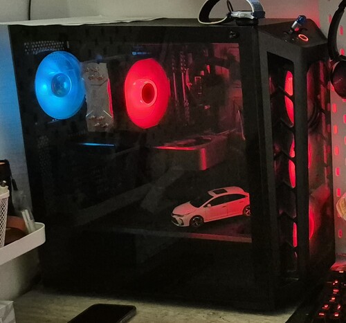 Tökéletesen működő, gyárihoz képest a hátsó venti RGB-re cserélve, de valamiért csak a kéket hozzta nekem. Van hozzá egy zacskó csavar, de annak mindenre kiterjedő tartalmáért felelősséget nem vállalok, nekem atx-el teljesértékűen működött. A ház kapott egy ID-COOLING HA-02 ARGB ventilátor elosztót. 1 db ROG matrica a hátsó oldali üvegen, kérés esetén nyomtalanul eltávolítom.